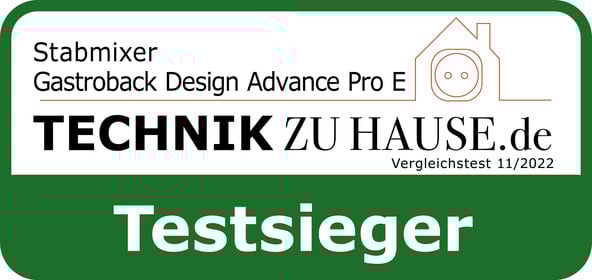 Der Gastroback Design Stabmixer Advanced Pro E 40976 erzielt im Vergleichstest des Magazins „Haus & Garten Test“ mit sechs weiteren Stabmixer-Sets das Gesamtergebnis „sehr gut (1,3)“. Die „sehr gute“ Funktion glänzt z. B. bei Fruchtmilchshakes und Kichererbsenpüree, beim Sahneschlagen und Häckseln und bietet eine hohe Arbeitsgeschwindigkeit. Das Gerät ist einfach zu bedienen und problemlos zu reinigen. Es ist hervorragend verarbeitet. Außerdem verbraucht es sehr wenig Strom und ist sehr sicher. Insgesamt erreicht das Modell das gleiche Top-Ergebnis wie der Testsieger.