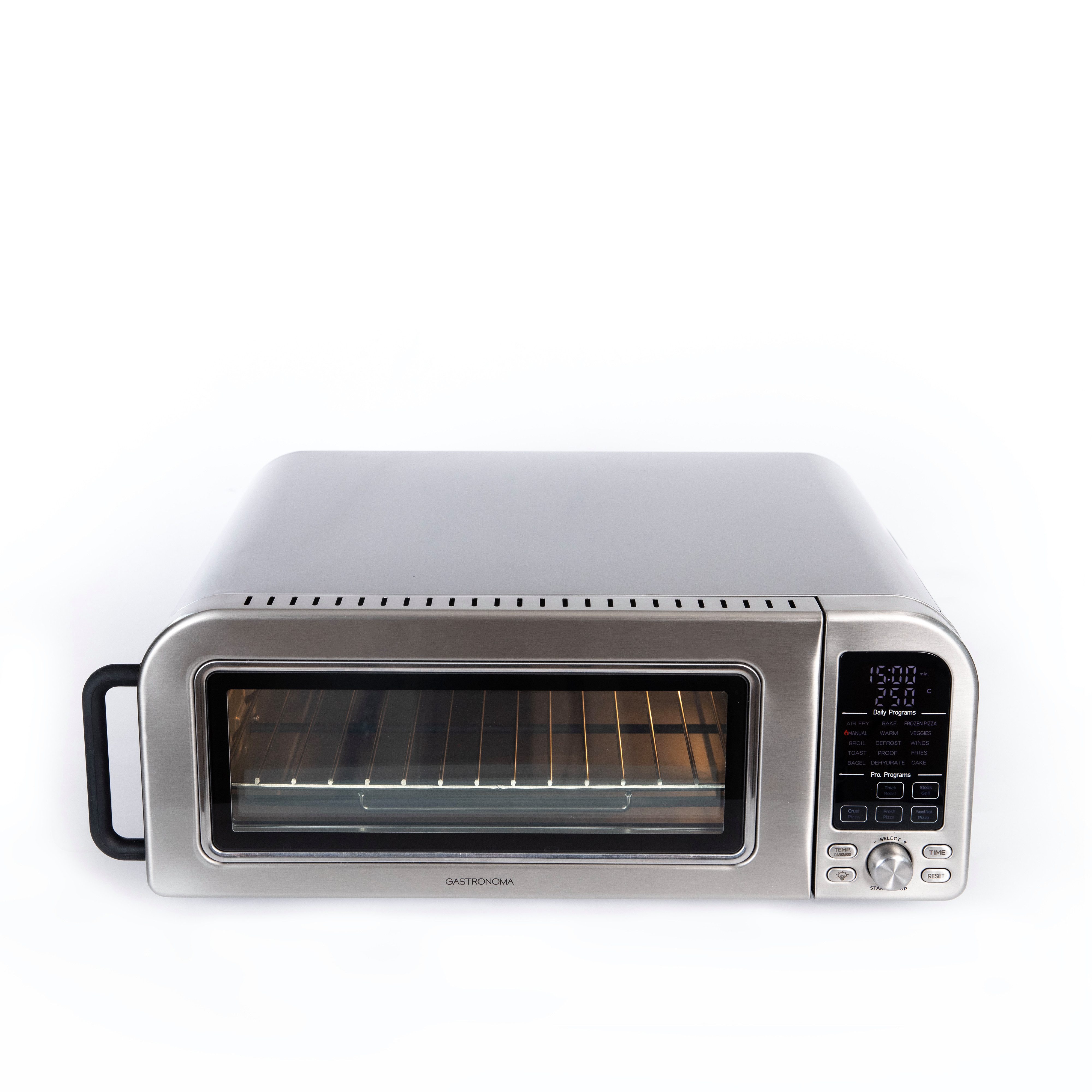 Mit 19 automatischen Programmen, einschließlich spezieller Einstellungen für Pizzas, bietet dieses Gerät die Flexibilität, die Sie für alle Ihre Kochbedürfnisse benötigen. Das robuste Edelstahlgehäuse und das langlebige Heizelement garantieren eine langanhaltende Leistung, während der Konvektionsventilator eine gleichmäßige Luftzirkulation sicherstellt.