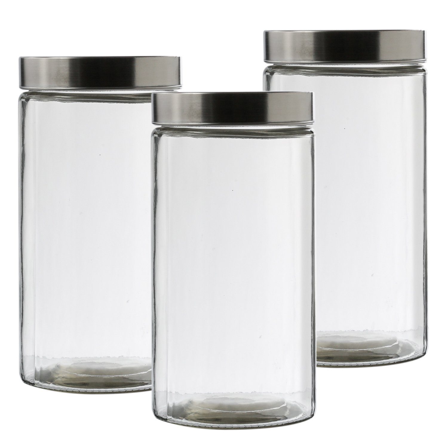 Vorratsdose L - Glas mit Edelstahldeckel - 1,7 Liter - D: 11cm - H: 22cm - 3er Set