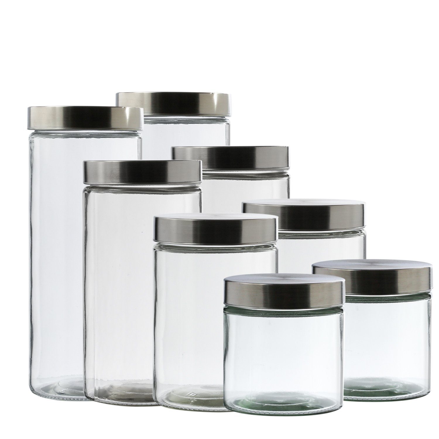 Diese modernen und praktischen Vorratsdosen mit Edelstahldeckel und Silikondichtung sind ideal für alle trockenen Lebensmittel wie Mehl, Nüsse, Nudeln, Gewürze, Tee und vieles mehr. Die transparenten Vorratsgläser haben ein Fassungsvermögen von jeweils 0,85l, 1,25, 1,7l und 2,2l.