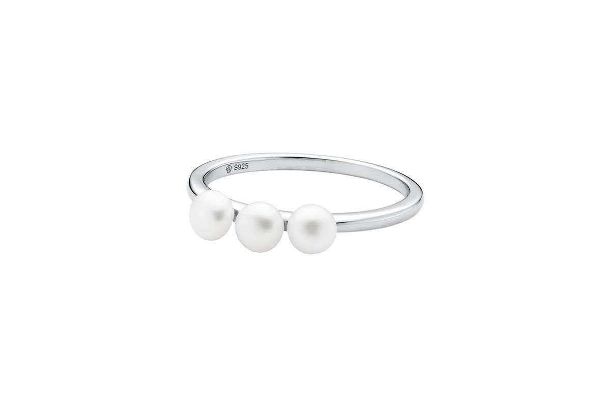 Dieser elegante Perlenring weiß mit 3 Perlen 4-4.5 mm ist mit echten Süßwasserzuchtperlen gearbeitet und ist ein echtes Markenprodukt von Gaura Pearls, Estland.