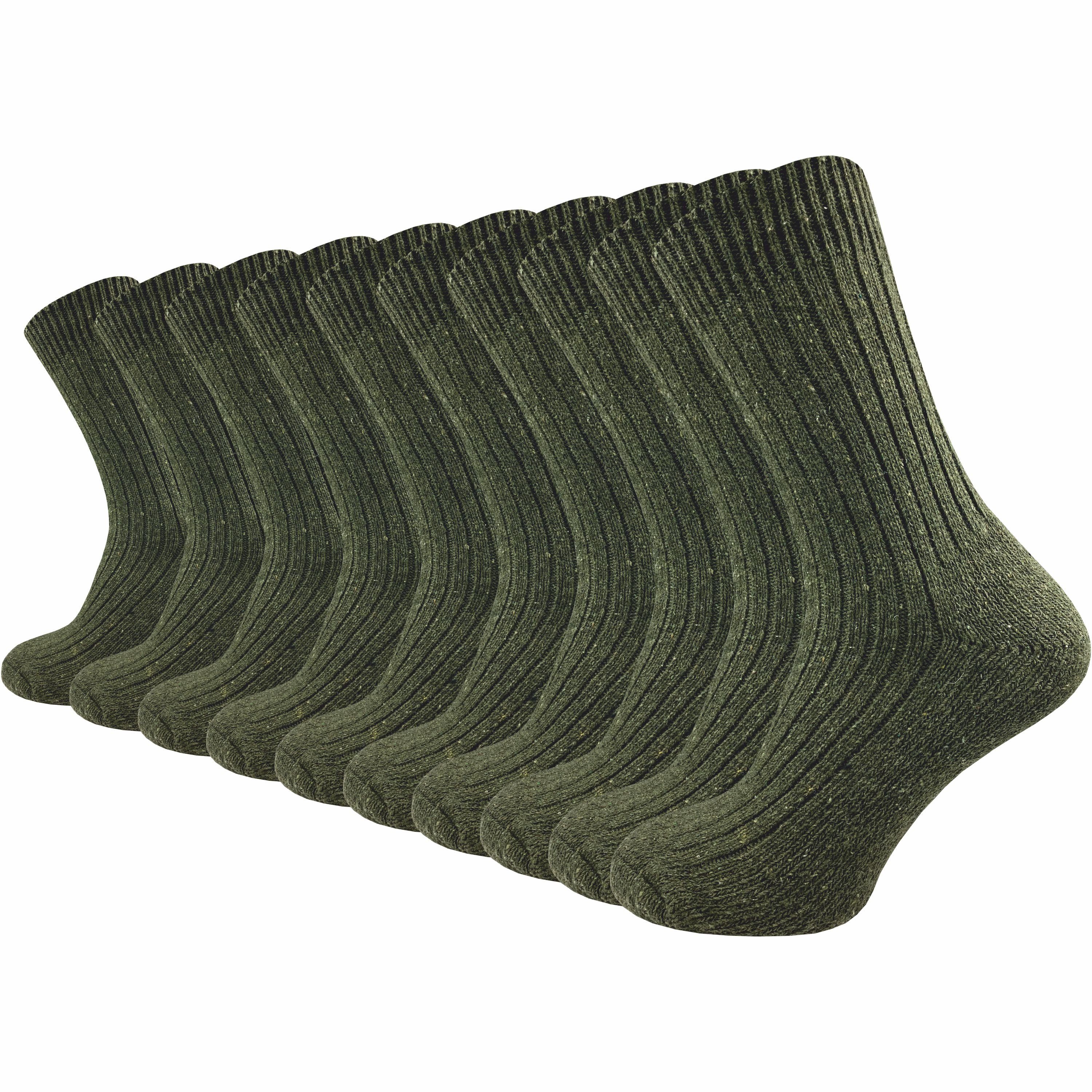 Die GAWILO 10 Paar Herren Army Socken sind die perfekte Wahl für Outdoor-Aktivitäten wie Jagd und Wandern. Diese Socken bestehen aus 70% Wolle, 18% Polyester, 10% Polyacryl und 2% Elasthan, was sie atmungsaktiv und bequem macht. Der verstärkte Frotteefuß sorgt für einen hohen Tragekomfort und verhindert Blasen an den Füßen. Die extra verstärkten Belastungszonen an Ferse und Fußspitze erhöhen die Haltbarkeit der Socken und machen sie extra robust. Die dunkelgrünen Socken haben einen klassischen Look und sind perfekt für den täglichen Gebrauch. Sie sind pflegeleicht und können einfach bei 30°C in der Wollwäsche in der Waschmaschine gewaschen werden, ohne dass sie einlaufen oder filzen. Mit dem Kauf von 10 Paar erhalten Sie ein großartiges Preis-Leistungs-Verhältnis. Diese Army- und Freizeitsocken sind die perfekte Wahl für Männer, die Wert auf Komfort, Haltbarkeit und einfache Pflege legen. Ob für die Jagd, Wandern oder einfach für den täglichen Gebrauch, die GAWILO 10 Paar Herren Army Socken sind eine ausgezeichnete Wahl.