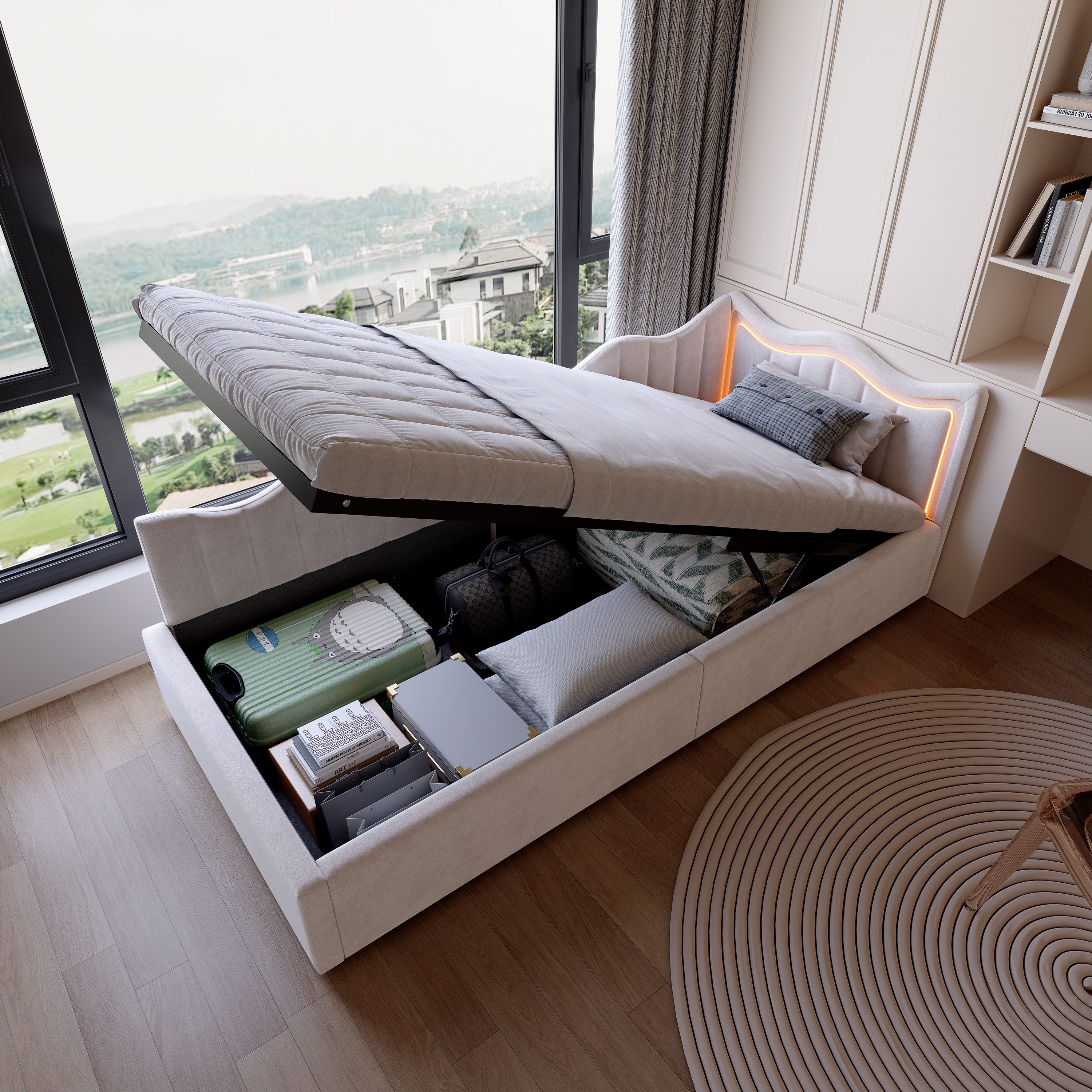 Genießen Sie modernen Komfort mit dem LED Polsterbett, das stilvolles Design mit praktischer Funktionalität kombiniert.