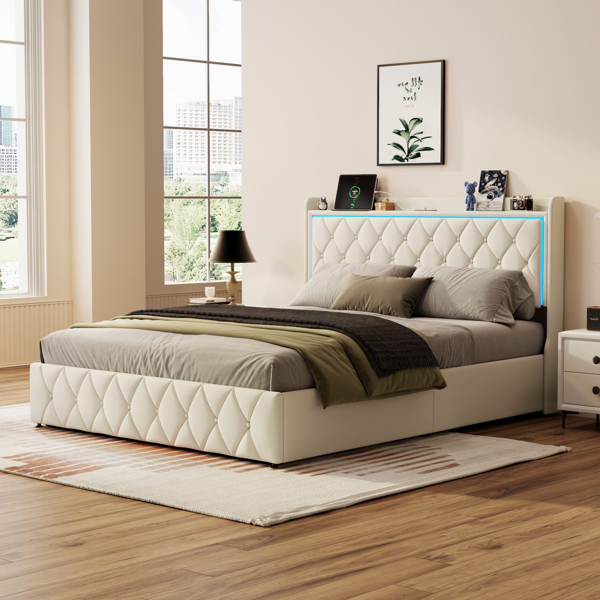 Gönnen Sie sich ein einzigartiges Schlaferlebnis mit unserem stilvollen LED Polsterbett! Dieses Bettgestell kombiniert eine moderne Ästhetik mit Funktionalität, um Ihr Schlafzimmer in eine Wohlfühloase zu verwandeln.