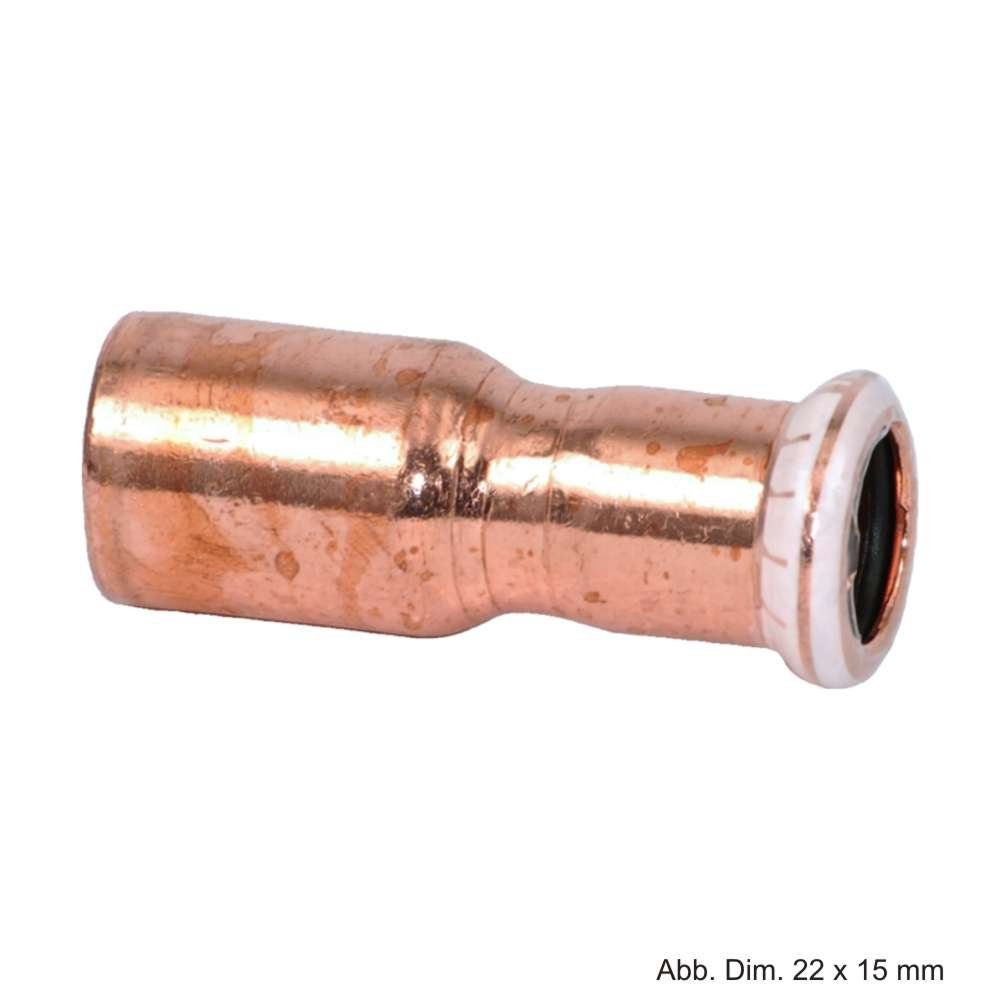 Eigenschaften: Das Mapress Kupfer Pressfitting-System und Qualitätskupferrohr werden mit einem geeigneten Presswerkzeug unter Einhaltungder Einschubtiefe als Pressfitting-Verbindung miteinander verpresst. Die Rohrdimensionen d 12-35 mm werden mit Pressbacken verpresst. Die Rohrdimensionen d 42–108 mm werden mit Pressschlingen und den zugehörigen Zwischenbacken verpresst. Mapress Kupfer Pressfittings sind hergestellt aus Cu-DHP Kupfer mit der Werkstoff Nr.: CW 024A. Das Mapress Kupfer Pressfitting-System d 12–108 mm ist durch den DVGW geprüft und zertifiziert (DW-8511AU2013). Die Pressverbinder aus Kupfer bzw. Rotguss sind entsprechend dem DVGW-Zertifikat unverpresst undicht. Konturringe aus Butylkautschuk CIR-schwarz für Pressfittings d 12 - 54 mm, sowie Oval-Dichtringe aus EPDM-schwarz für Pressfittings d 76,1 – 108 mm Mapress Pressfittings und Dichtungen sind zugelassen für die Desinfektion von Trinkwasser gemäß der Liste der Aufbereitungsstoffe und Desinfektionsverfahren nach §11 der Trinkwasserverordnung 2001. Folgende Betriebsbedingungen der Dichtringe CIIR schwarz sind zu beachten: Minimale Betriebstemperatur: -30 °C Maximale Betriebstemperatur: 120 °C Material: Butylkautschuk Farbe: schwarz Rotguss Pressverbinder sind entsprechend dem DVGW- Zertifikat, ebenso wie Mapress Kupfer Pressfittings, für Kupferrohre nach DIN EN 1057 und dünnwandige Kupferrohre nach DVGW-Arbeitsblatt GW 392 zugelassen. Mapress Kupfer und Rotguss Pressfittings sind mit einem weißen Pressindikator gekennzeichnet. Über die Farbe des Pressindikators ist das Material (Weiß = Werkstoffe Kupfer Messing und Rotguss), über den Verschlussstopfen der Einsatzbereich des Fittings erkennbar: Transparent = Standardanwendung (z.B. Trinkwasser) Gelb = Gas (z.B. Erdgas) Anthrazit = Sonderanwendung (z.B. Solar) GB62312