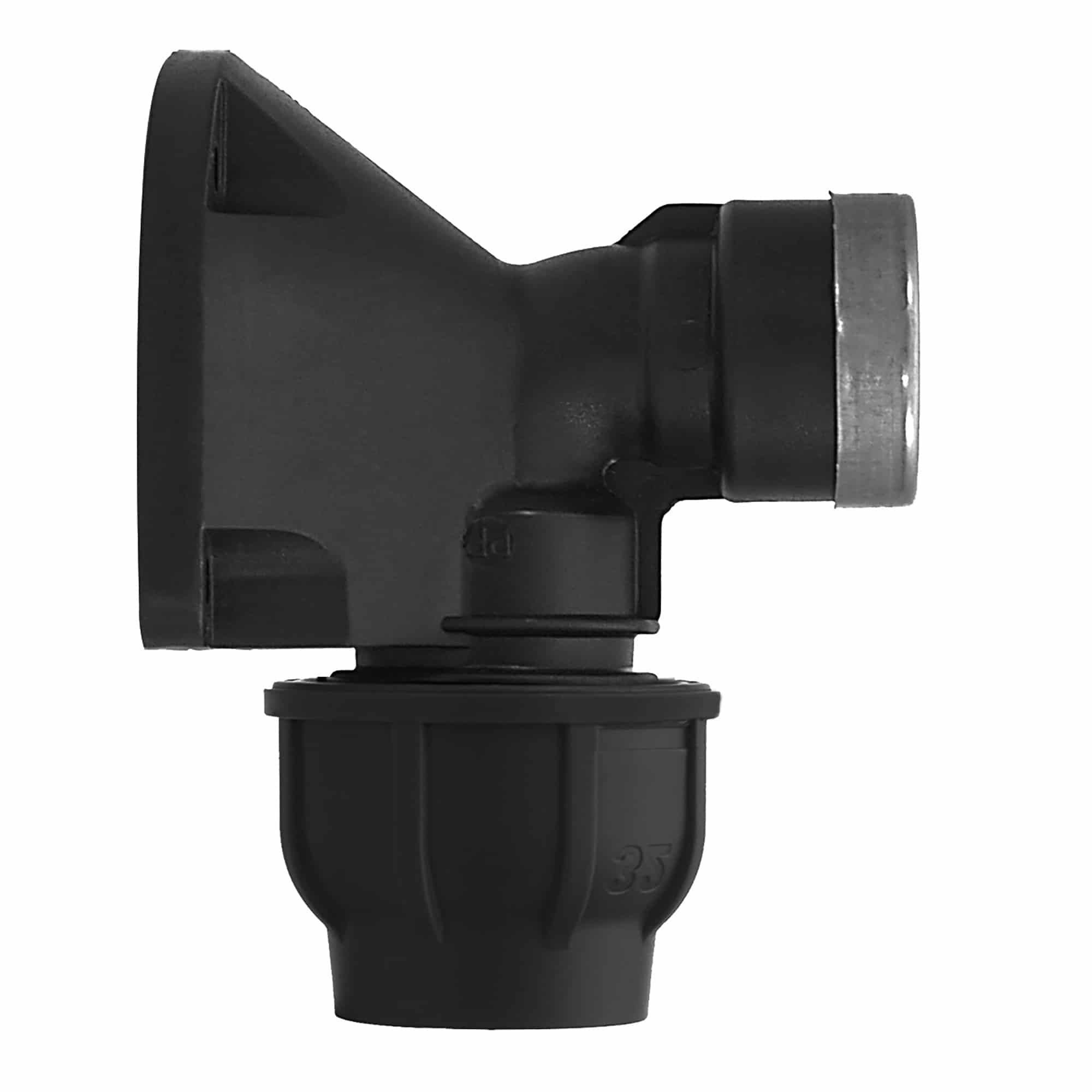 Artikelhinweise | Mit Klemmverschraubung Anschluss unten für PE-Rohr, Anschluss vorn Innengewinde |