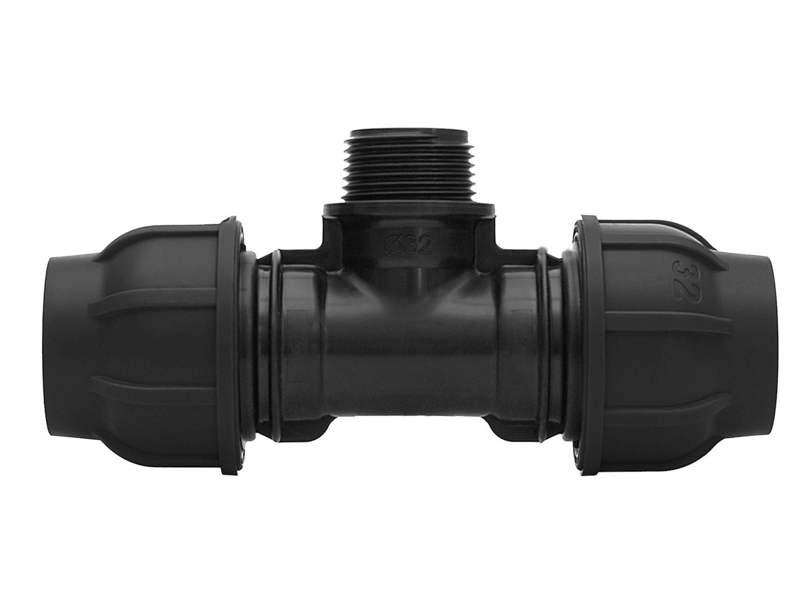 GEBO-Plast Klemmverbinder T-Stück für PE-Druckrohr - mit Außengewinde Ausführung: siehe Auswahltabelle oben Max Druck bis 25°C: 16 bar Max Druck bei 25°C - 35 °C: 12,5 bar Max Druck bei 36°C - 45 °C: 10 bar Zulassung: DVGW Körper: Copolymer (PP-B), UV-beständig Druckring: Polypropylen Konusmutter: Polypropylen, UV-beständig Klemmring: Polyacetal Resin (POM) O-Ring: EPDM Anschlussgewinde nach ISO 7/1 bzw. DIN EN 10226-1 Die GEBO Kunststoff-Klemmverbinder sind einsetzbar für trinkwasserführende PE-Rohre nach DIN 8074 bzw. DIN EN 12201.