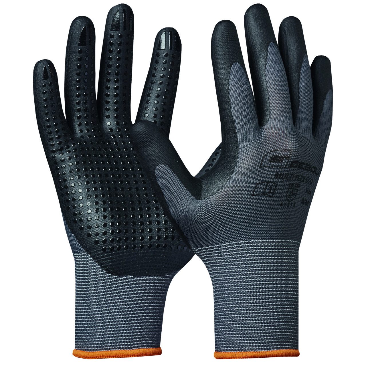 Der Gebol Multi Flex Eco eignet sich durch seine optimale Passform und seine Griffsicherheit für die unterschiedlichsten Tätigkeiten die Fingerfertigkeit verlangen, wie z. B. Reparatur-, Montage-, Tischler- und Präzisionsarbeiten. Der nahtlose Montagehandschuh mit seiner Nitril-Mikroschaum-Beschichtung und den Nitril-Noppen auf der Handinnenfläche gewährleistet auch einen sicheren Griff bei glatten Gegenständen.