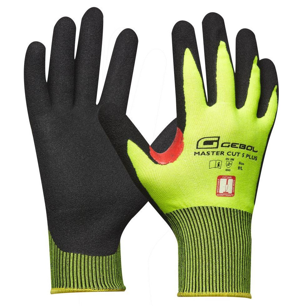 Der Gebol Arbeitshandschuh Master Cut C Plus aus Nylon, Glasfaser, HPPE und Spandex mit einer PPU-Nitril-Mikroschaum Beschichtung mit Sandy Finish eignet sich besonders für Arbeiten im Bereich Spenglerei und Metallbearbeitung. Der Master Cut C Plus gibt einen guten Griff bei glatten Gegenständen und ist bis zu einem gewissen Grad ölabweisend. Der Nahtlose Montagehandschuh mit Schnittschutz (Schutzstufe C) passt sich perfekt jeder Hand an. Zusätzlich wurde der Daumen/Zeigefingerbereich verstärkt, um diesen empfindlichen Bereich der Hand zu schützen.