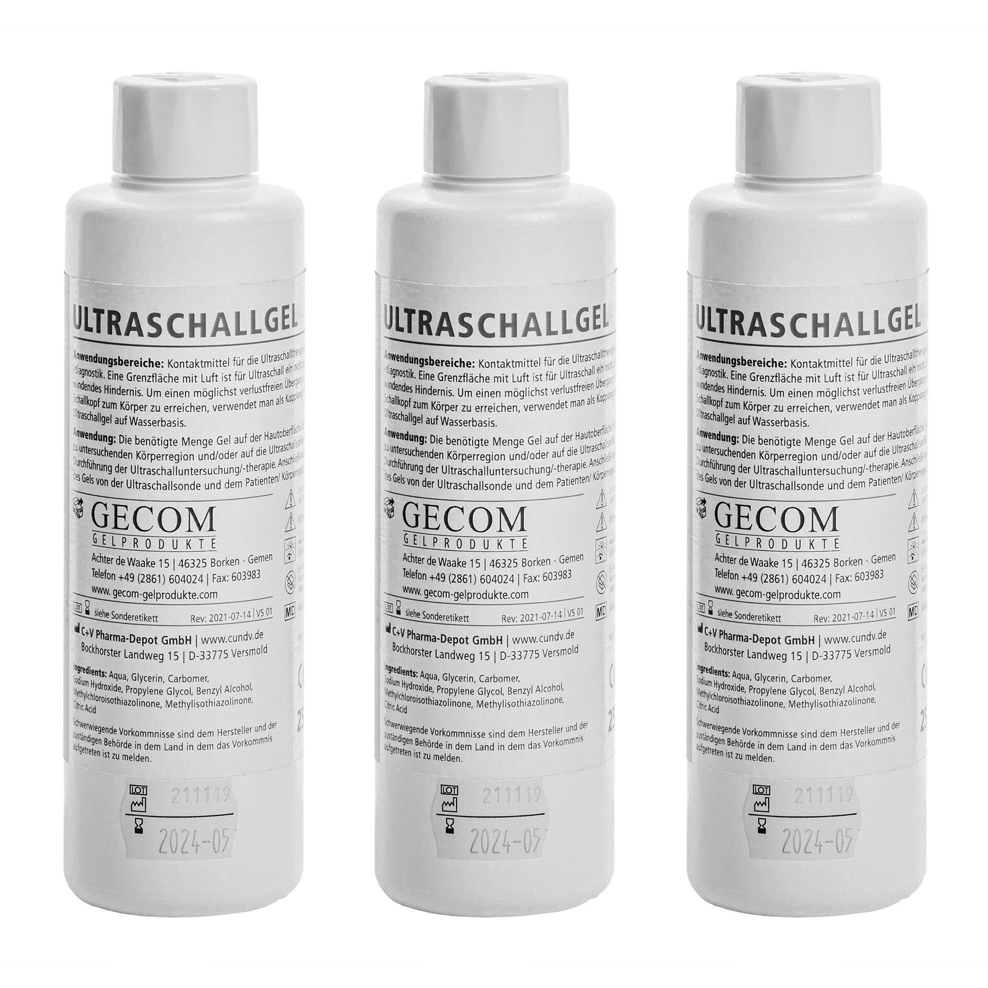 ULTRASCHALLGEL / KONTAKTGEL 250ml Kontaktgel für die Ultraschall-Diagnostik und für die Anwendung bei einer IPL Laser Haarentfernung Merkmale : •Mit Feuchthalter; klebt sehr wenig •Dermatologisch getestet; minimale allergene Potenz •Wasserlöslich; hohe Viskosität •Nicht tropfend •Wirkt kühlend •Haut- und Schleimhautneutral pH 5,8 – 6,4 •Unter Vakuumbedingungen hergestellt daher absolut blasenfrei und akustisch präzise •Unschädlich für Haut, Schallköpfe und Sonden •Beste Ankopplungswerte; gute Netzeigenschaften; Spannungsrisse an den Schallköpfen sind auszuschließen •Frei von Formaldehyd, Parfümierungszusätzen, Farbstoffen und UV-Stabilisatoren, daher •Inhaltsstoffe sind: Aqua, Glycerin, Carbomer, Sodium Hydroxide, Propylene Glycol, Benzyl Alcohol, Methylchloroisothiazolinone, Methylisothiazolinone •30 Monate (ab Produktionsmonat) lagerfähig •Deutsches Produkt Anwendung : •Nur für die äußere Anwendung •Gel in der gewünschten Menge auf die zu untersuchende/behandelnde Stelle gleichmäßig auftragen und mit dem Schallkopf des Gerätes über das Gel gleiten •Nach der Untersuchung/Behandlung das restliche Gel mit einem Papiertuch entfernen •Schallkopf idealerweise mit einem Reinigungsspray für Schallköpfe säubern Lieferumfang : •Wiederverschließbare Dispenser Flasche mit 250ml Inhalt •1 Rechnung