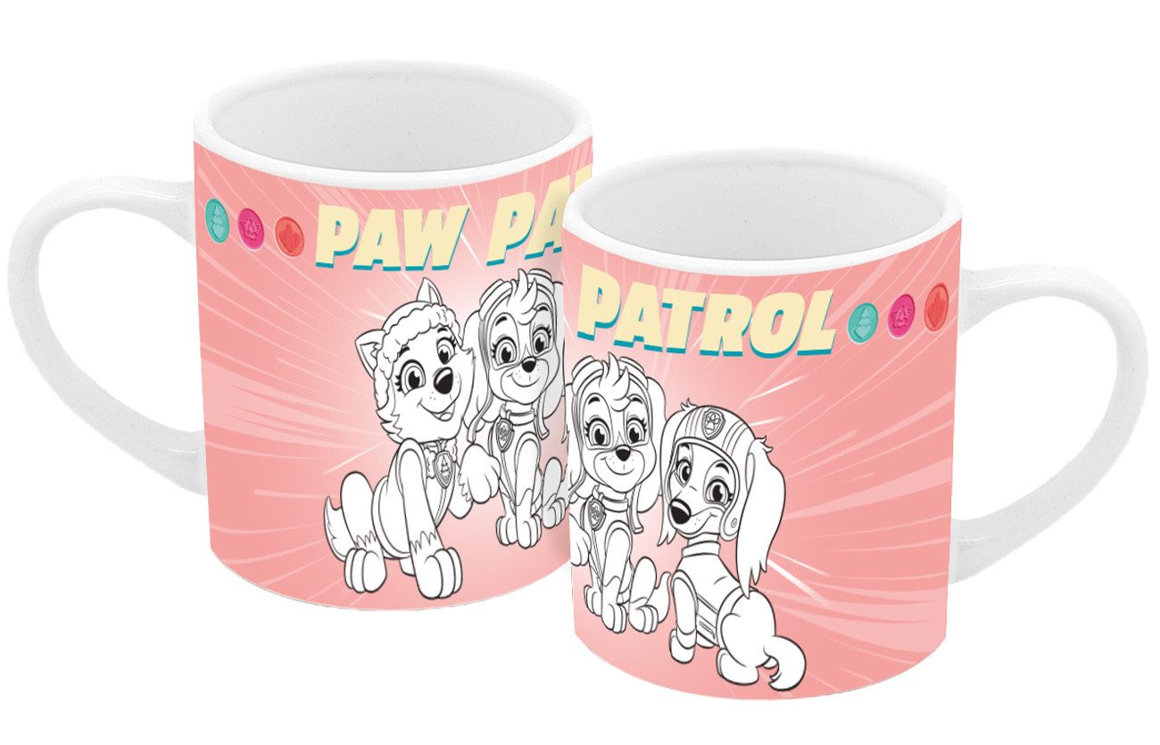 Bei der Tasse Paw Patrol Girl Pup Power kannst du selbst kreativ werden. Die Ausmaltasse hat besondere weiße Flächen im Motiv, die mit einfachen Buntstiften ausgemalt werden können. Die ausgemalten Flächen verschwinden wieder in der Spülmaschine und du kannst sie immer wieder neu ausmalen. Die Tasse aus Keramik hat ca. 250ml Füllmenge und ist spülmaschinen- und mikrowellengeeignet. Buntstifte sind nicht enthalten.