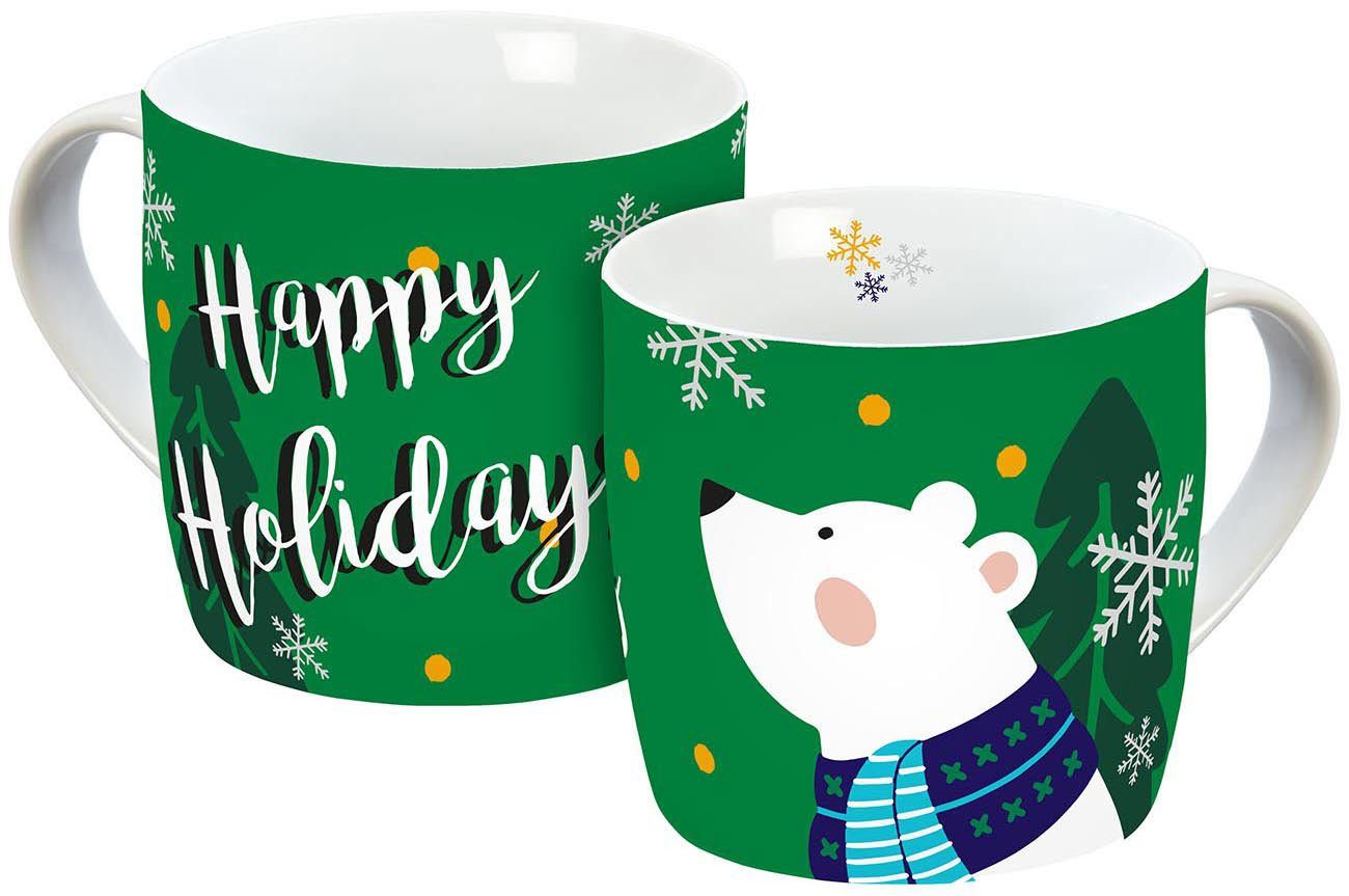 Die Tasse Happy Holidays 300ml ist eine süße Geschenkidee für Winterfans. Die grüne Eisbären Tasse ist eine schöne Geschenkidee in der kalten Jahreszeit. Ob für Wintergeburtstagskinder, als Wichtelgeschenk oder unter dem Tannenbaum… die Weihnachtstasse ist eine schöne und praktische Aufmerksamkeit. Die Tasse besteht aus hochwertigem Porzellan und hat eine Füllmenge von 300 ml für den Glühwein, Kakao, Kaffee oder Tee. Die Lieblingsgetränke lassen sich auch ganz einfach in der Mikrowelle erwärmen, denn die Weihnachtstasse ist mikrowellengeeignet. Nach dem Gebrauch kann sie in der Spülmaschine gereinigt werden.