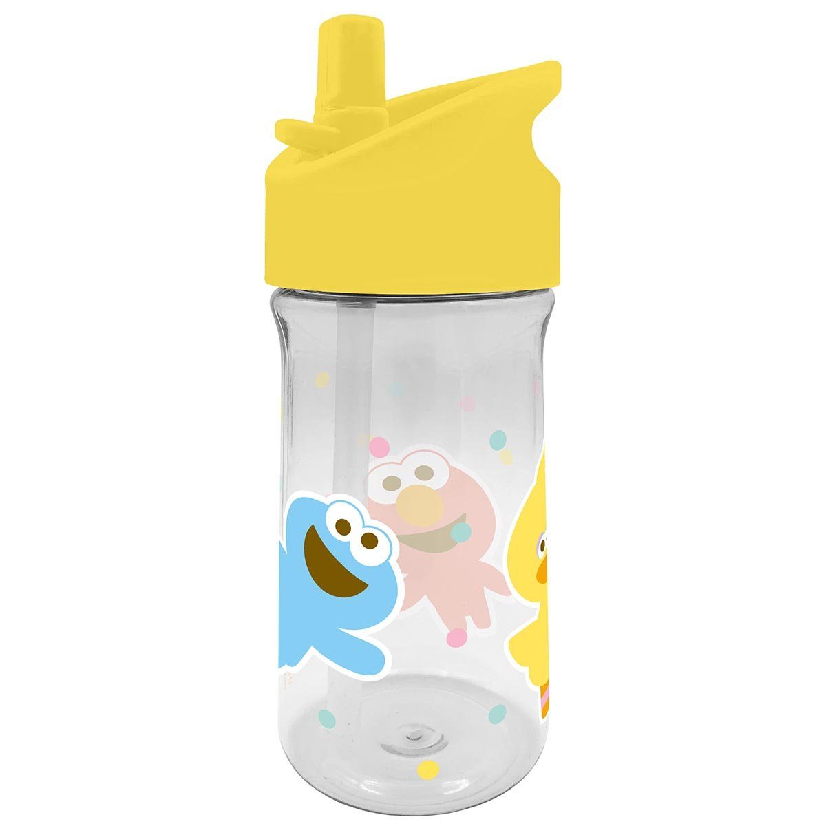 Die Trinkflasche Sesmstraße Freunde 350ml besteht aus dem robusten Material Tritan. Der gelbe Schraubdeckelverschluss verfügt über einen integrierten Trinkhalm. Super fürs Autofahren, weil die Kleinen nichts verschütten. Der Deckel ist dank der Silikondichtung und der Klapptechnik des Trinkhalms auslaufsicher. Die Trinkflasche für Kinder hat eine Füllmenge von 350ml. Als Durstlöscher können die Kleinen Fruchtsaftgetränke, Wasser oder kalten Tee aus der Flasche trinken. Für kohlensäurehaltige Flüssigkeiten nicht geeignet.