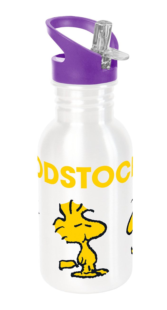 Die Trinkflasche Peanuts Woodstock 500ml aus Edelstahl ist ein robuster Begleiter im Alltag und zeigt Snoopys kleinen Freund Woodstock mit seinen Artgenossen. Die Trinkflasche besteht aus hochwertigem 18/8 Edelstahl mit einem BPA-freien Trinkhalm, aus dem die Kids richtig gerne trinken. Der schnell ausklappbare Trinkhalm macht die Trinkflasche zu einem tollen Begleiter beim Sport und in der Schule. Die Flasche lässt sich dank der großen Öffnung leicht reinigen. Gut verschlossen, ist die Edelstahlflasche auslaufsicher. Achtung! Unter dem eingeklappten Trinkhalm befindet sich ein kleiner Silikonstopfen, damit beim Trinken Luft in die Flasche gelangen kann. Wird der Trinkhalm zugeklappt verschließt sich das Luftloch. Bitte den Stopfen nicht entfernen, da die Flasche sonst auslaufen kann. Am Tragegriff des Deckels kann die Flasche am Rucksack zusätzlich gesichert werden.