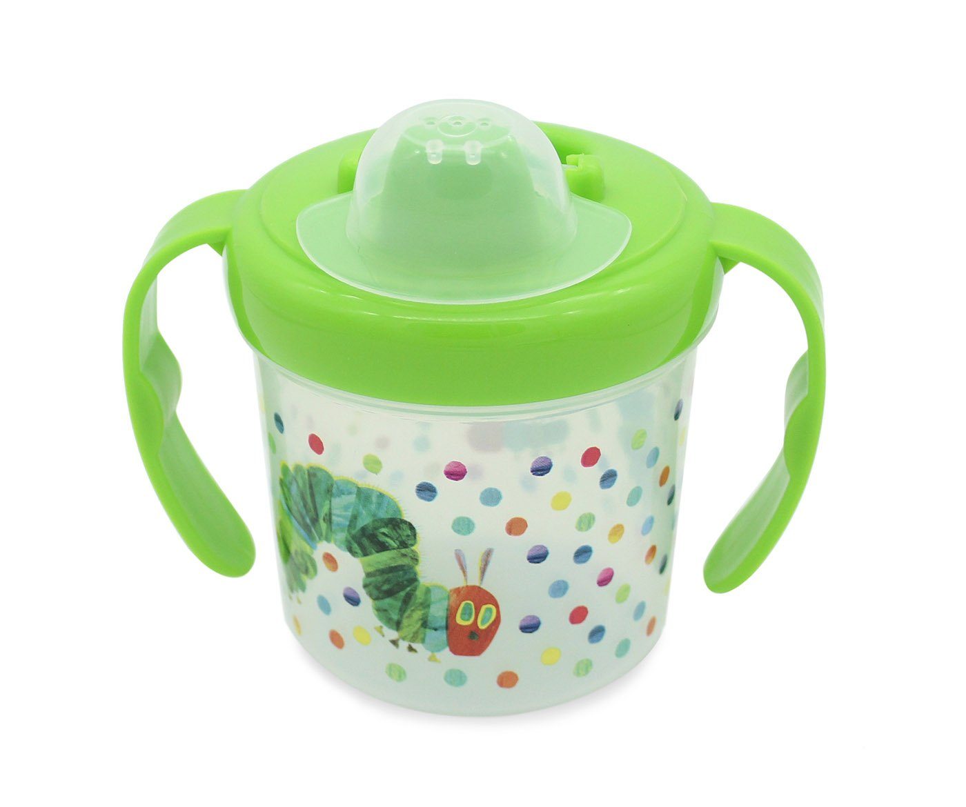 Geda Labels GmbH Trinklernbecher Raupe Nimmersatt Punkte, PP, Grün, 11,5x8x10,5cm, auslaufsicher durch Silikondichtung