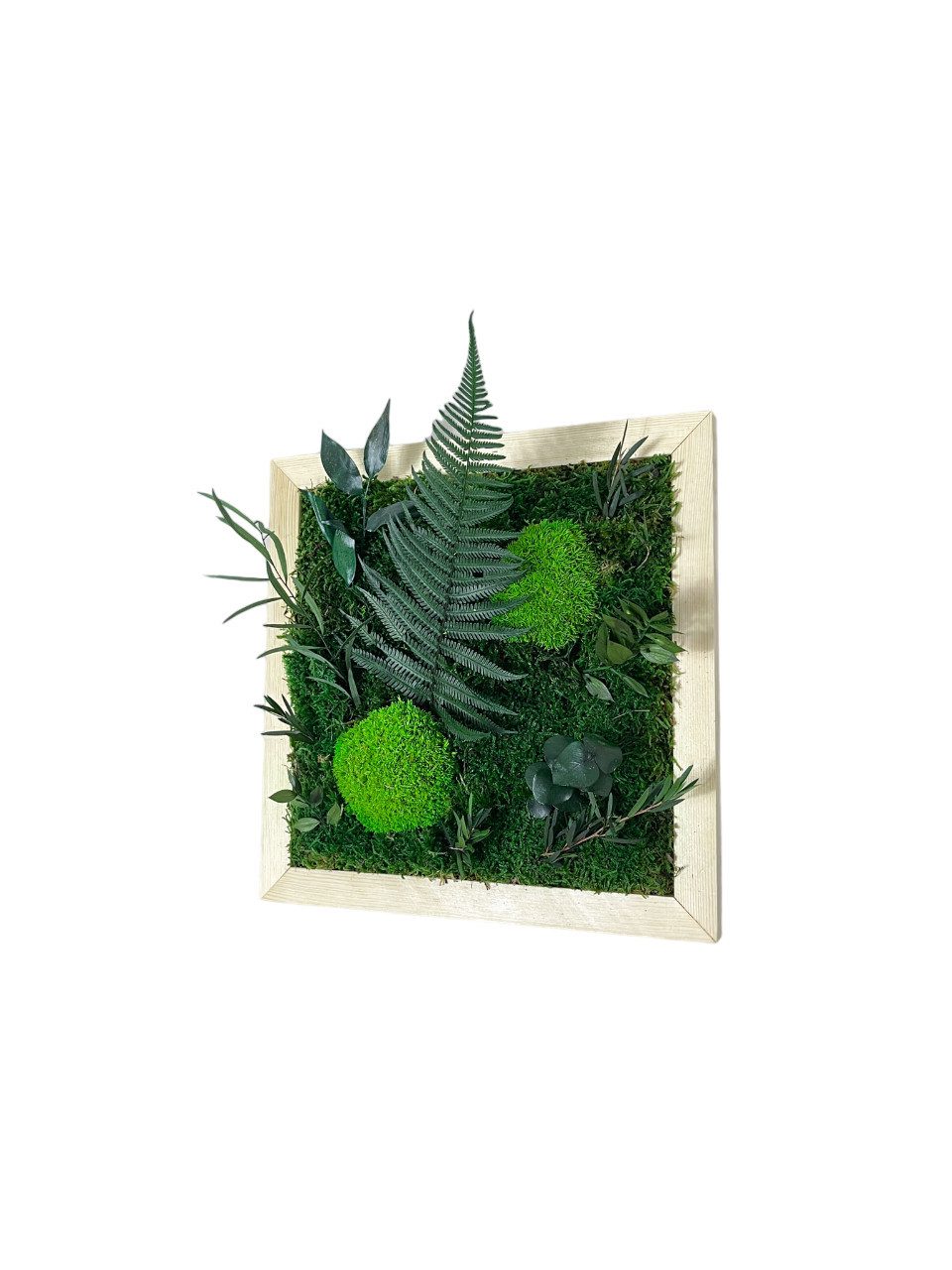 Das Moos ist mit einem aufwendigen Verfahren speziell gereinigt, konserviert und präpariert worden. Es ist viele Jahre haltbar, bei richtiger pflege gibt es bei dem Moos kein verblassen oder Alterungserscheinungen. Размер der Rahmen M Durchmesser 30x30 cm Mit dem Dschungel Style, bringt man einen echten Design Blickfang von Pflanzen an die Wand. Die kleinen Hügelmoose, Farnblätter und viele präparierte Pflanzen ergänzen sich harmonisch, zu einem wunderschönen Wandgarten. Es hat lebendige Farben und seine unverkennbare Struktur. Все Moossorten, sind bei uns mit unbedenklichen Mitteln präpariert worden, um Umwelt und Mensch zu schonen. Unsere nachhaltigen Natur-Unikate, werden alle liebevoll und mit viel Herzblut per Hand gefertigt. Unser Moos hat eine natürliche Herkunft und einen sehr leichten, angenehmen Geruch und trägt zu einem beruhigenden, angenehm Raumklima bei. Der leichte Duft des Mooses hält ca. 5 – 6 Wochen an. In Gegensatz zu normalen Gemälden oder Bildern, ziehen Moosbilder immer die Blicke auf sich und sind das erste, was ein Besucher im Raum wahrnimmt. Es hat eine sehr angenehme Wirkung und beruhigt das Auge. Die Moosbilder haben eine schallabsorbierende Eigenschaft, selbst der Anblick wirkt beruhigend, wie bei einem schönen Spaziergang im Wald. Das behandelte Moos ist zudem als nicht entflammbar eingestuft und ist speziell präpariert zum Schutz vor Insekten. Keine Pflege oder Aufwand notwendig: Das Moos sieht lebendig und vital aus, es muss dennoch niemals bewässert oder gedüngt werden. Außerdem hat das Moos eine antistatische Wirkung, welche keine Staubbildung zulässt. Jedes Bild wird mit einem Wandmontageset und einer genauen Pflegeanleitung gesendet. Eine zeitlose, natürliche und moderne Wanddekoration. Spezielle Wünsche oder Ideen, werden gerne umgesetzt. Hierzu kann einfach eine Nachricht an uns gesendet werden.