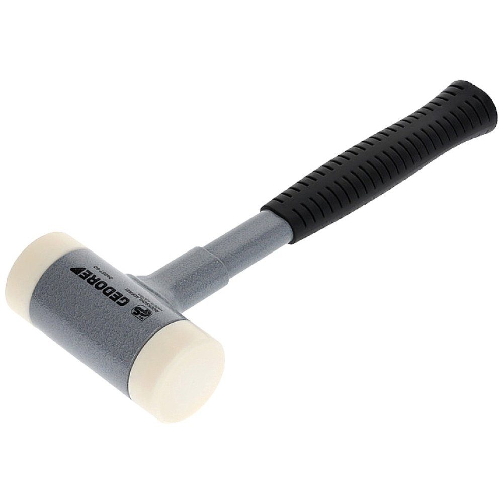 Rückschlagfreier Schonhammer mit äußerst stabilem und robustem Stahlrohrstiel. Splitterfreie, bruch- und verschleißfeste Polyamid-Köpfe. Hammerschlagsilber pulverbeschichtet
