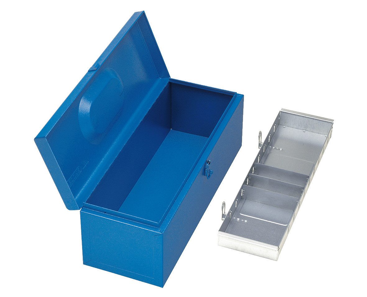 Stahlblechkonstruktion mit Tragegriffen, GEDORE blau, spritzwassergeschützt, Mit robusten Beschlägen, Tragegriffen und Deckelarretierung in geöffneter Stellung, Spezialinnenauskleidung, mit Planfach und Kleinteileeinsatz No. ES 1440, Tragkraft: No. 1440-70, -83, -91, -100 bis zu 400 kg ohne Verwendung der Fallgriffe, beim Anheben statische Tragkraft der Fallgriffe maximal 150 kg, Sonderausstattungen auf Anfrage