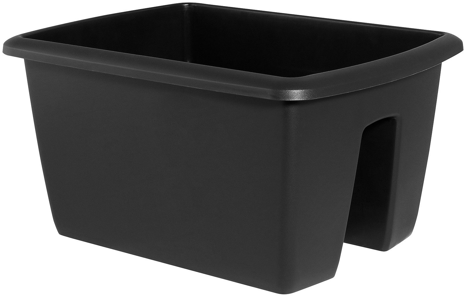 Der Topf wird einfach über das Balkongeländer geschoben und mit mitgelieferten Clips fixiert.