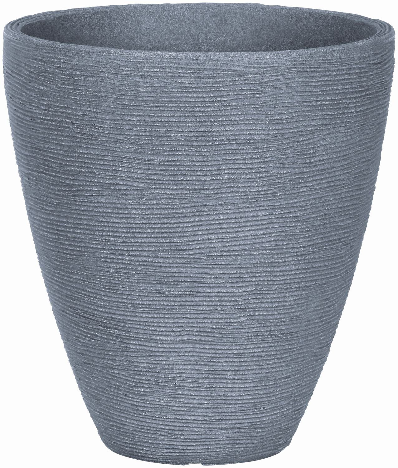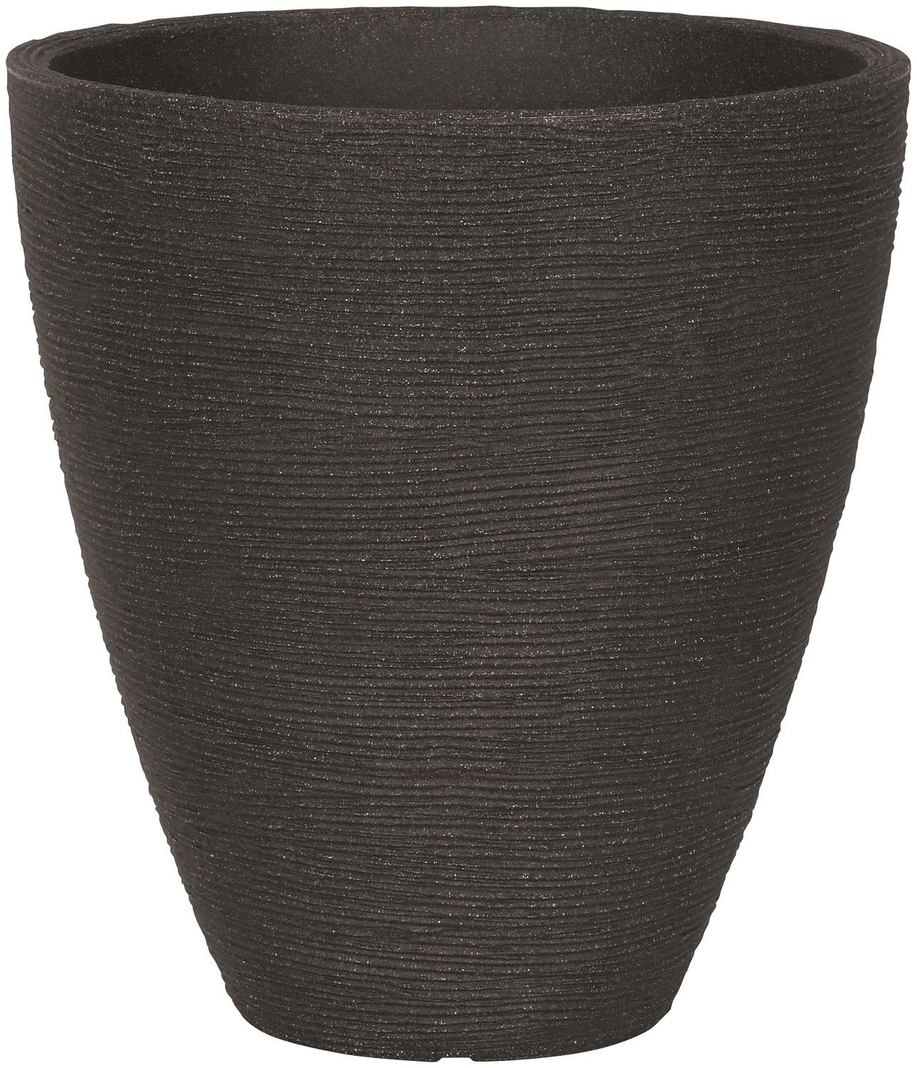 Dekoratives Pflanzgefäß aus stabilem Kunststoff mit modernem Rillendekor. Der Boden ist geschlossen, bei Bedarf können Sie einfach Ablauflöcher in den Boden bohren.