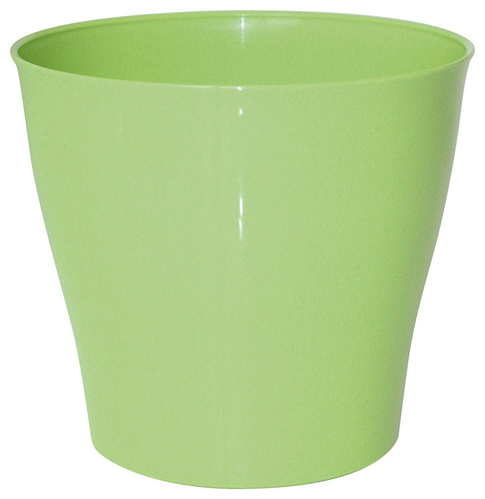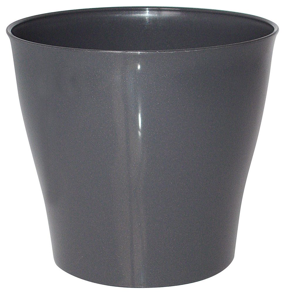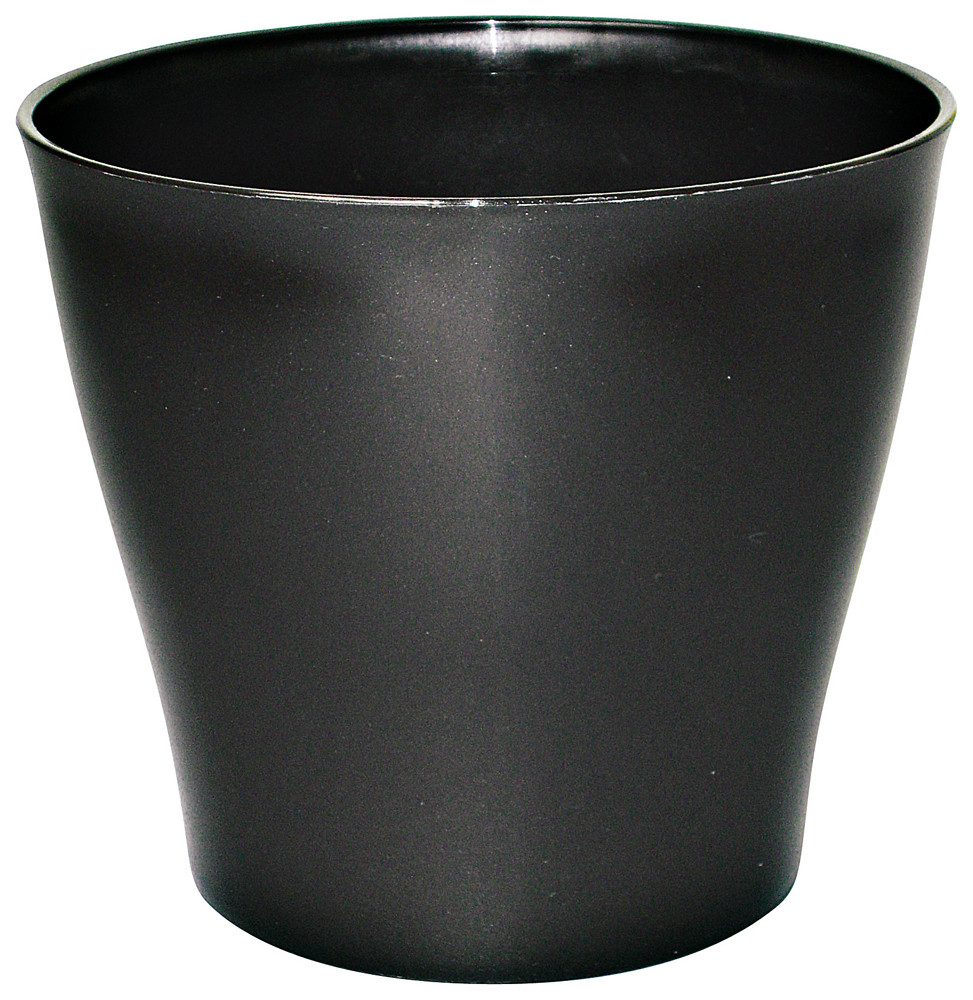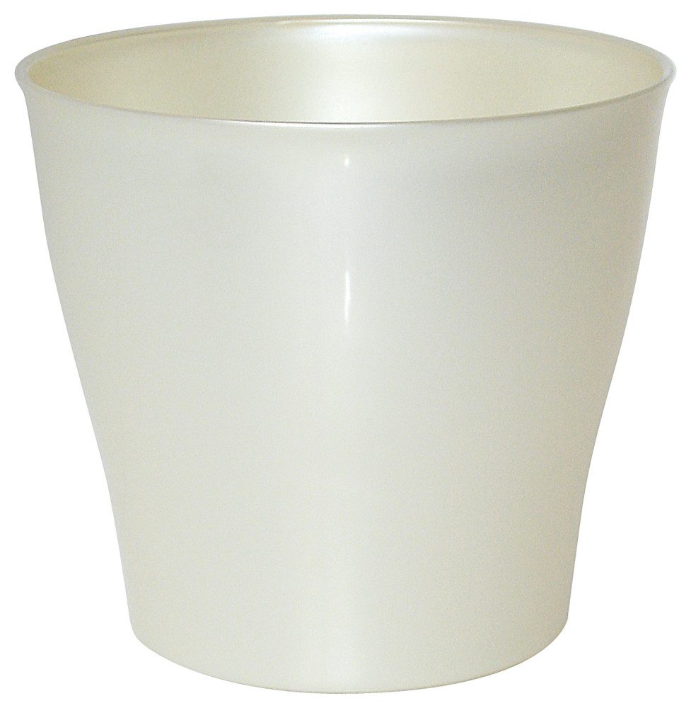 Schöner runder Übertopf aus stoß- und schlagfestem Kunststoff.