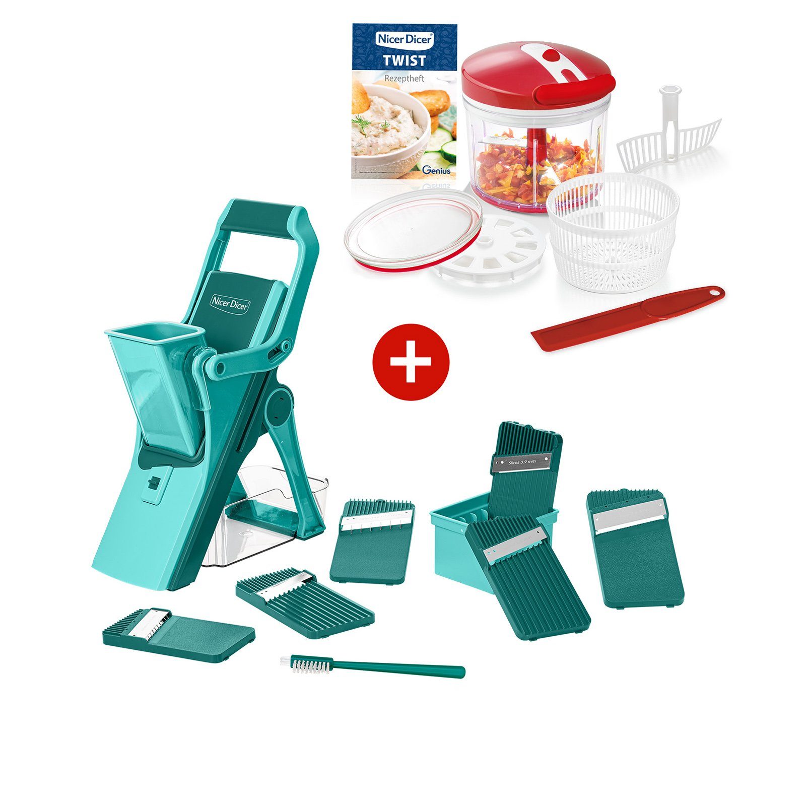Haben Sie genug von eintönigen, uninspirierten Speisen, für die Sie lange in der Küche stehen müssen? Möchten Sie beim Kochen lieber eine absolut schnelle und einfache Zubereitung erleben? Dann kommen Sie in den Genuss vom Nicer Dicer Mando und Nicer Dicer Twist! Die Kombination der beiden Produkte vereinfacht Küchenarbeiten um ein Vielfaches.