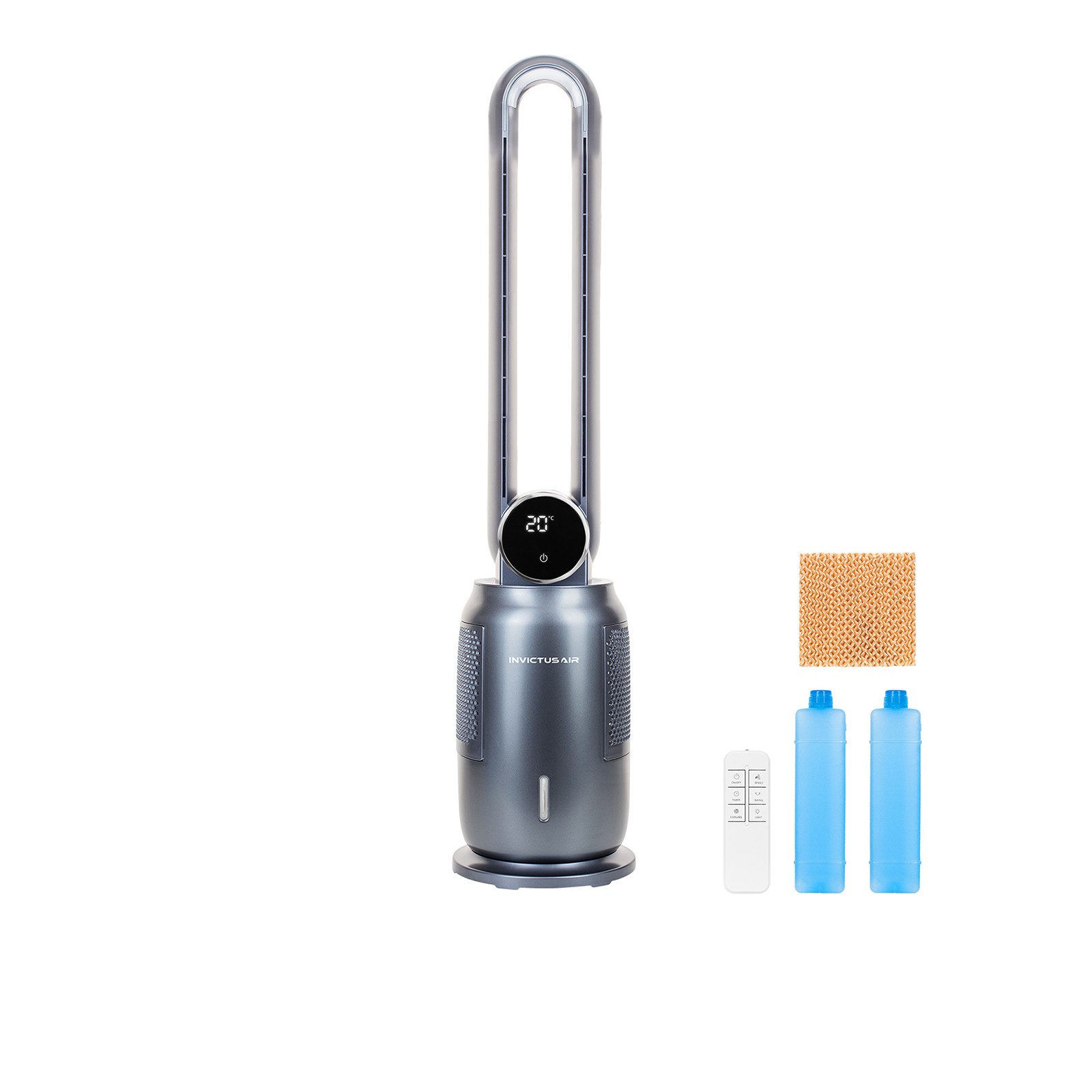 Die Kühl-Funktion des INVICTUS AIR AC7 kommt dabei ganz ohne giftige Kühlmittel, Abluftschlauch und damit verbundene Einbaukosten aus. Dafür sorgen die Kühl-Akkus, die das Wasser im Tank mit einem Fassungsvermögen von zwei Litern herunterkühlen.