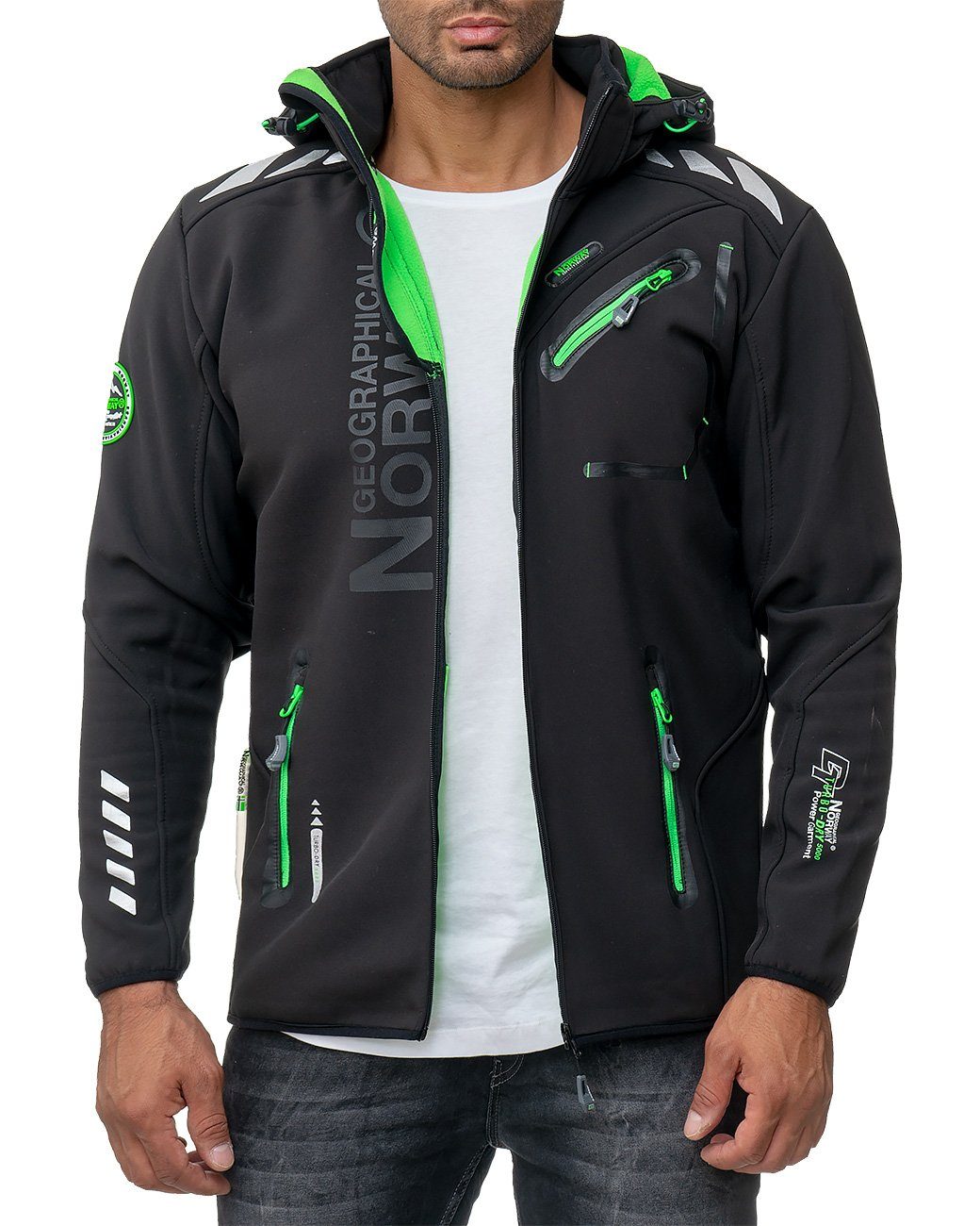 Entdecken Sie die vielseitige und funktionale Geographical Norway Herren Softshell Jacke, die sich perfekt für jede Wetterlage eignet. Diese Jacke ist wind-, wasser- und kälteabweisend, was sie zum idealen Begleiter für Outdoor-Aktivitäten macht. Zwei Seitentaschen mit Reißverschluss bieten sicheren Stauraum für Ihre Essentials, während die wasserabweisende Brusttasche zusätzlichen Schutz bietet. Die Kapuze mit Gummizug und der Stehkragen sorgen für zusätzlichen Schutz vor den Elementen, und die abnehmbare Kapuze bietet Ihnen Flexibilität bei wechselnden Wetterbedingungen. Ein stylischer Print und das wärmeisolierende, schnell trocknende Material sorgen nicht nur für eine ansprechende Optik, sondern auch für optimalen Tragekomfort. Die Geographical Norway Herren Softshell Jacke vereint Stil und Funktionalität und ist somit ein Muss für jeden modebewussten Mann.
