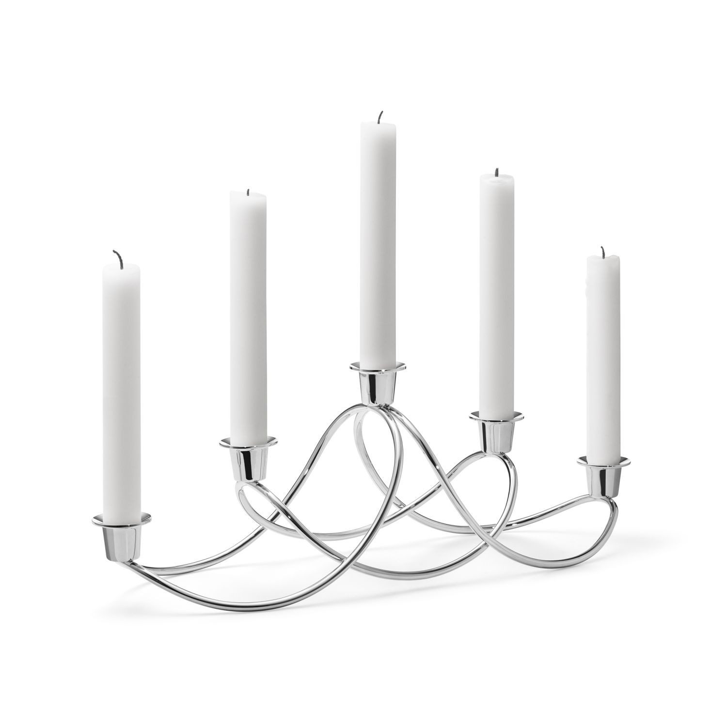 Der Kerzenhalter Harmony im Design von Maria Berntsen für Georg Jensen bietet Platz für fünf Stabkerzen und schafft eine festliche und gemütliche Atmosphäre. Mit seiner schmalen, länglichen Form findet er auch auf gedeckten Tafeln oder auf der Fensterbank Platz und kann Jahr für Jahr seinen dekorativen Glanz verströmen. Der Kerzenhalter besteht aus Edelstahl, ist 14,3 cm hoch und 41,9 cm lang.