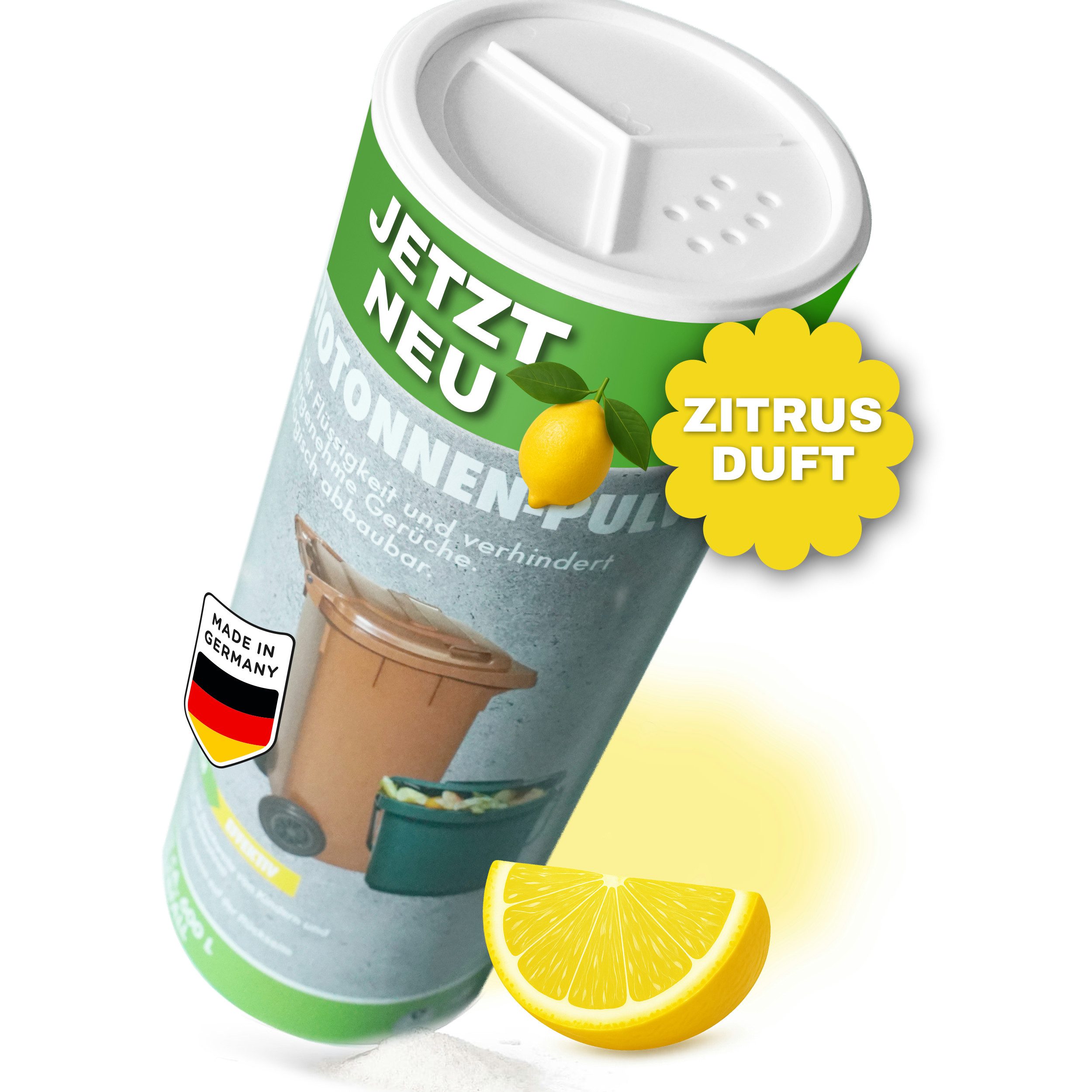 Biomüll ohne Geruchsbelästigung – Das Pulver für den Bioabfall Kennen Sie das? Sie öffnen Ihre Bio Müll Tonne und werden sofort von einem unangenehmen Geruch empfangen. Besonders in den warmen Sommermonaten verwandelt sich Bioabfall schnell in eine feuchte, stinkende Masse, die Schimmel, Fliegen und andere Insekten anzieht. Genau dieses Problem löst unser Biotonnen-Pulver. Das geruchsbindende Pulver entzieht dem Bioabfall die Feuchtigkeit und verhindert dadurch die Bildung von unangenehmern Gerüchen. Gleichzeitig sorgt es für einen angenehmen Citrusduft. Unser Biotonnen-Pulver wirkt auf rein mechanische Weise und ist biologisch vollständig abbaubar. Es eignet sich ideal für den Einsatz in Küchenabfalleimern, Biotonnen, Kompostern und auch im Wohnmobil oder beim Camping. Einfach nach jeder Abfallzugabe eine kleine Menge gleichmäßig über den Bioabfall streuen – fertig. Der Inhalt von 500 g reicht für rund 600 Liter Bioabfall und reicht so über ein paar Wochen.