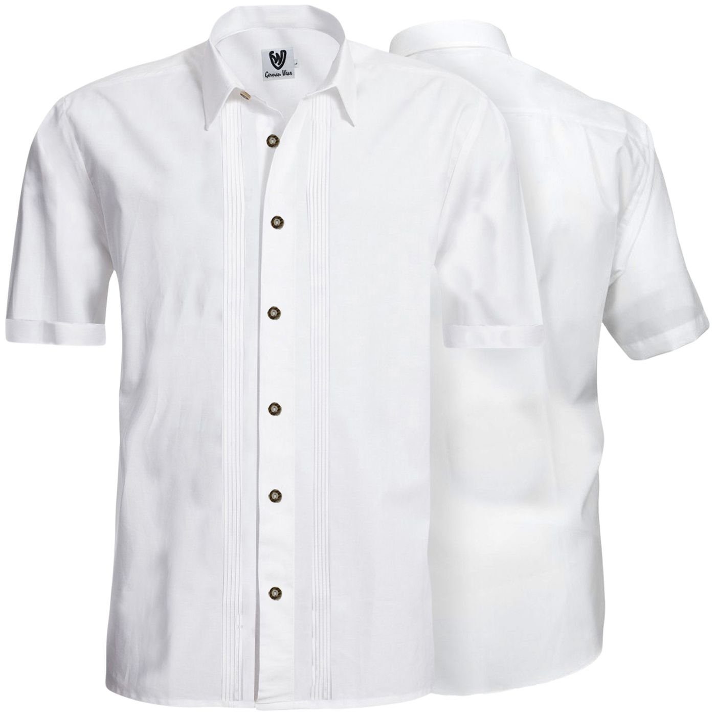 Trachtenhemd aus Baumwolle mit Biesen Halbarm, in der Farbe: Weiß