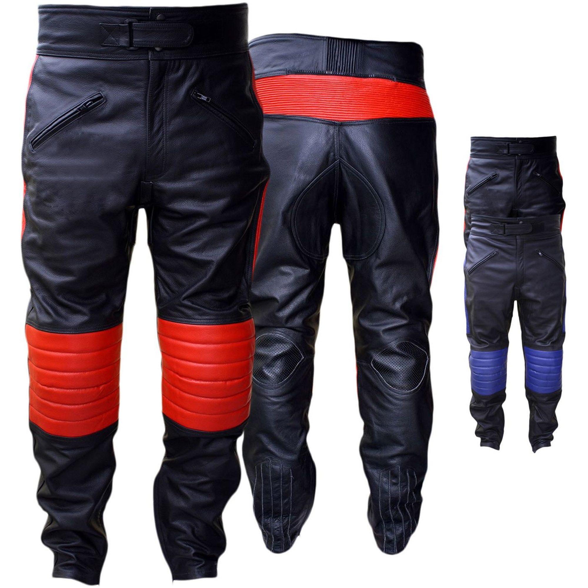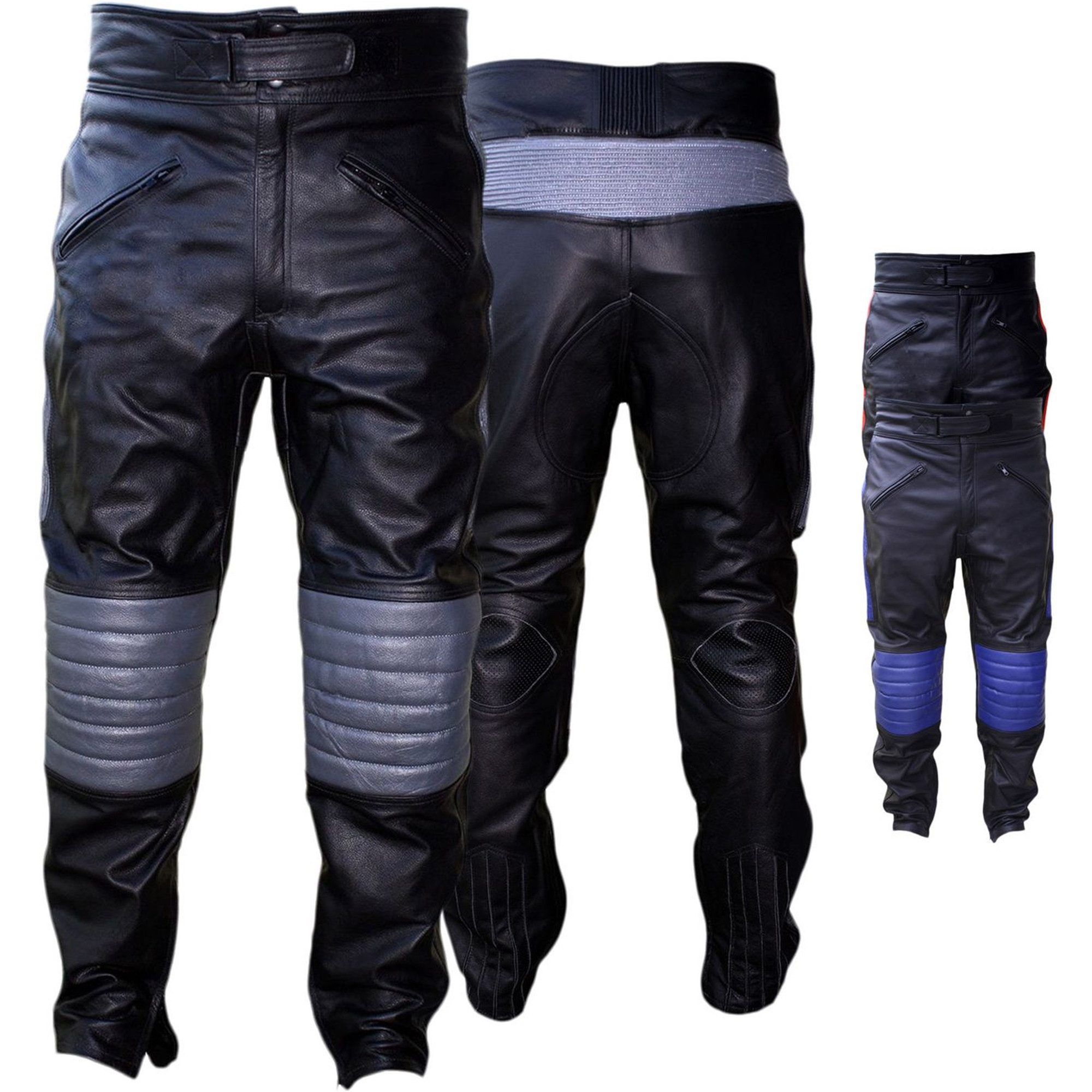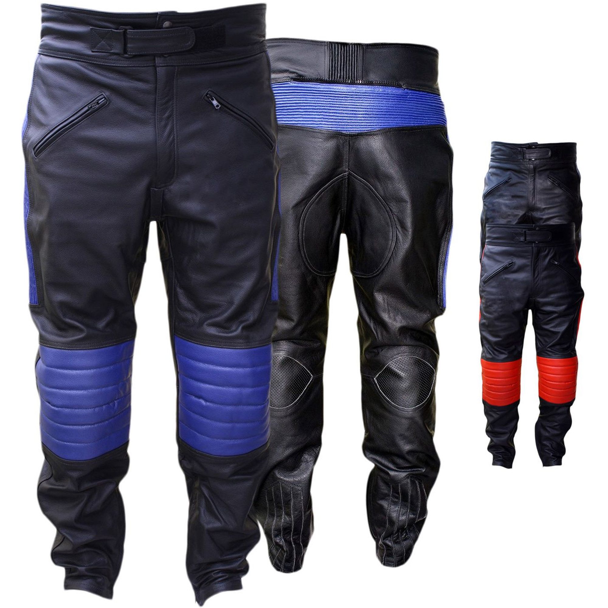 Motorrad Leder Motorradhose, kombigeeignet, Farbe: Metal,Rot,Blau / Schwarz