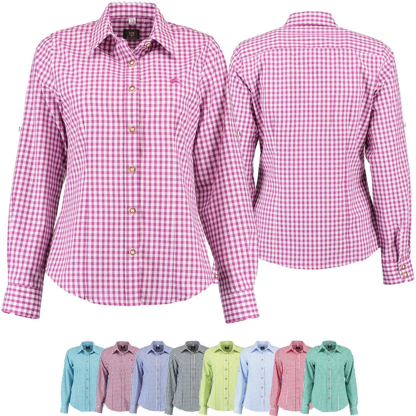 Damen Trachtenbluse/Lederhosenbluse aus feinster Baumwolle Farbe: Rot/Weinrot/Lila/Hellblau/Mittelblau/Türkis/Trachtengrün/Dunkelgrün