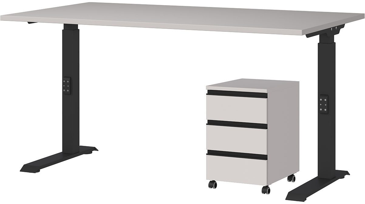 Set beinhaltet | Höhenverstellbarer Schreibtisch, Rollcontainer |