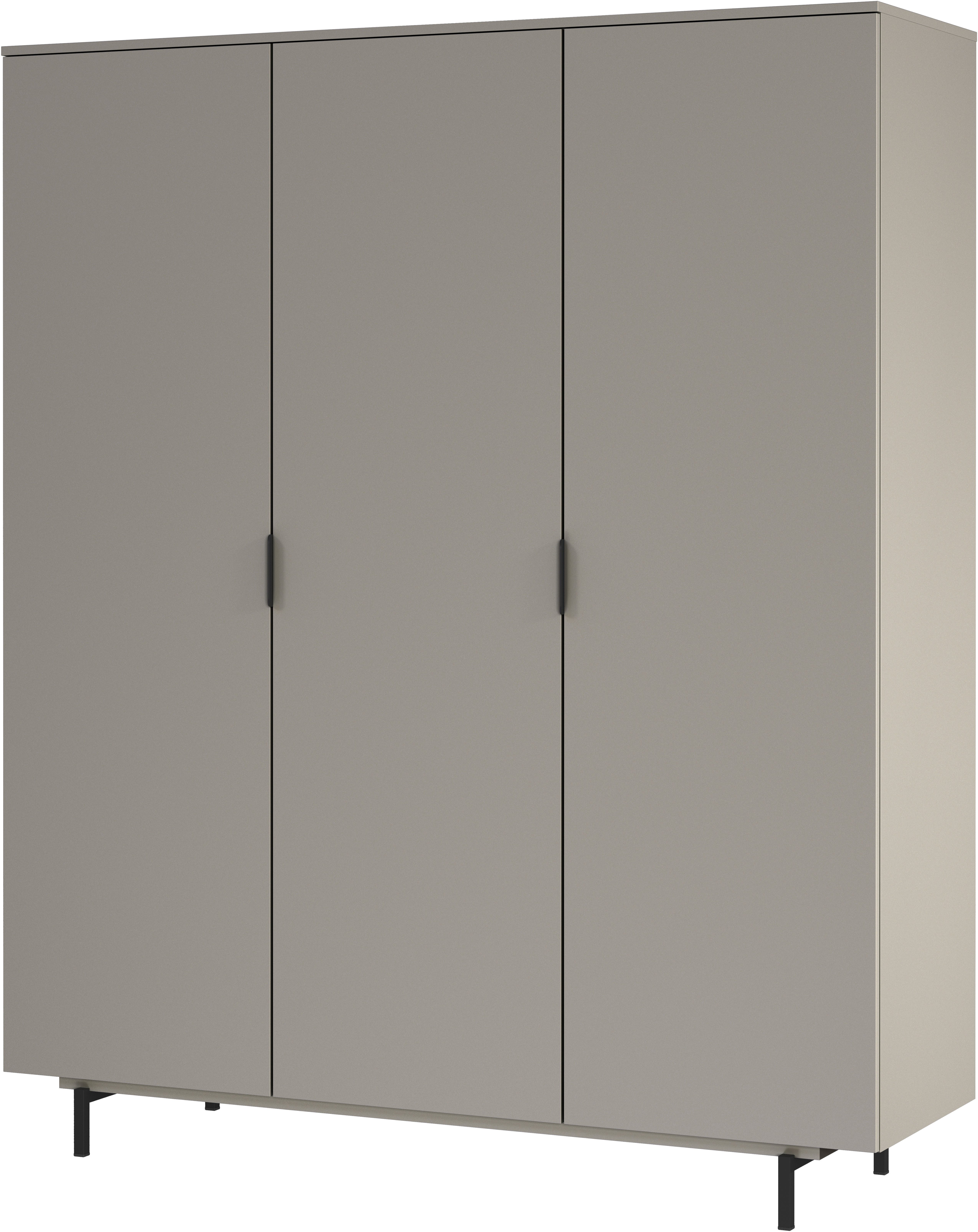Wissenswertes | • 1 Kleiderstange aus Metall • 3 gedämpfte Türen mit Soft-Close • 7 durchgehend höhenverstellbare, 22 mm dicke Einlegeböden • Eleganter Sockel und sanft abgerundete Kantengriffe aus pulverbeschichtetem Metall |