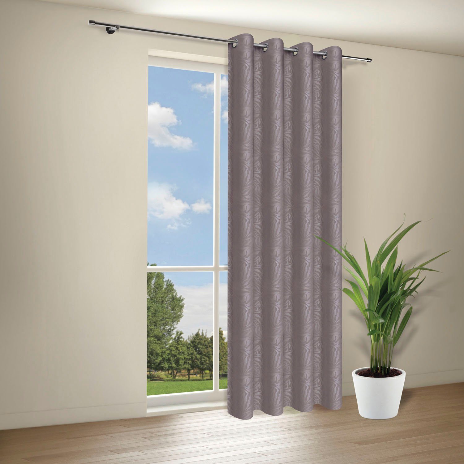 Hinweis Aufhängung | Aufhängung erfolgt mittels Ösen (Durchmesser ca. 35 mm) an der Gardinenstange. |
