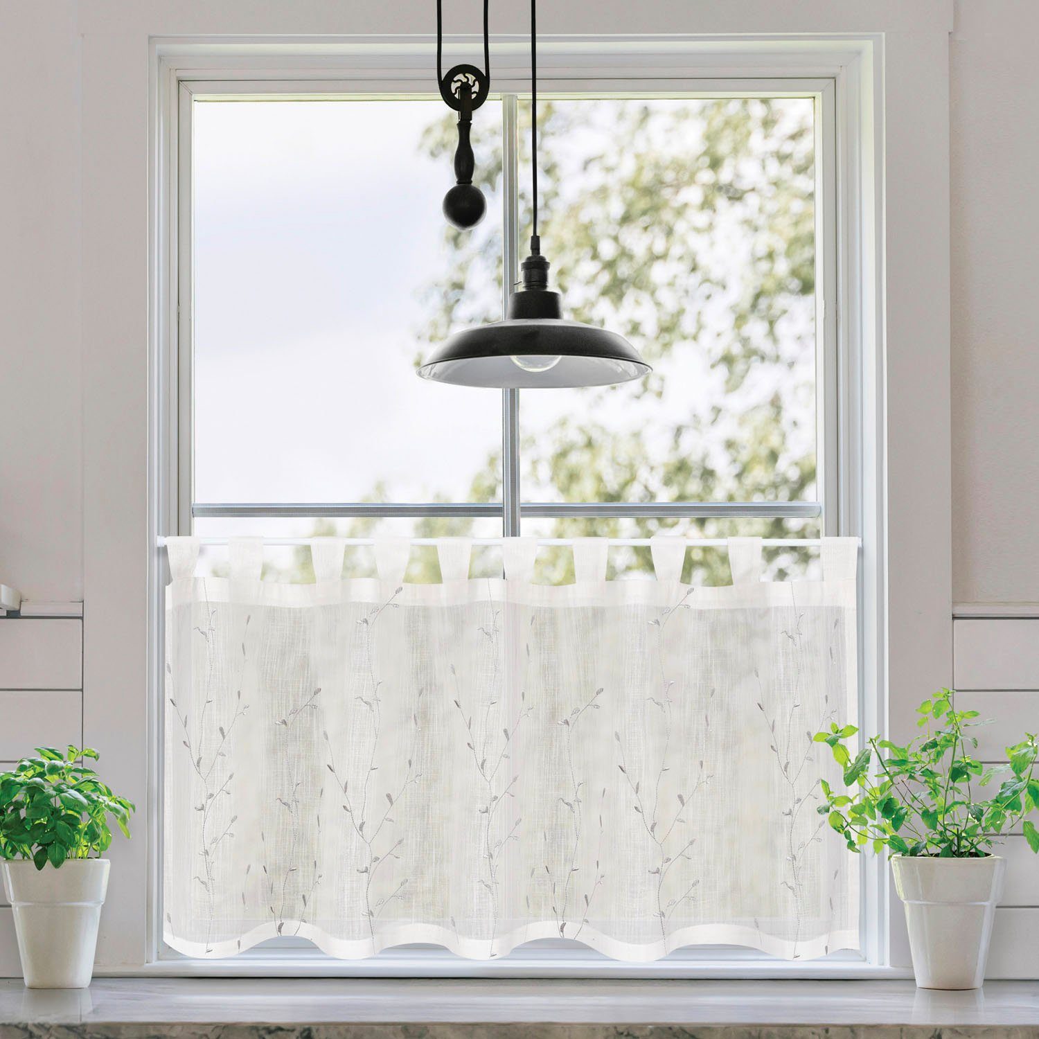 Hinweis Aufhängung | Aufhängung erfolgt mittels Schlaufen an der Gardinenstange. |