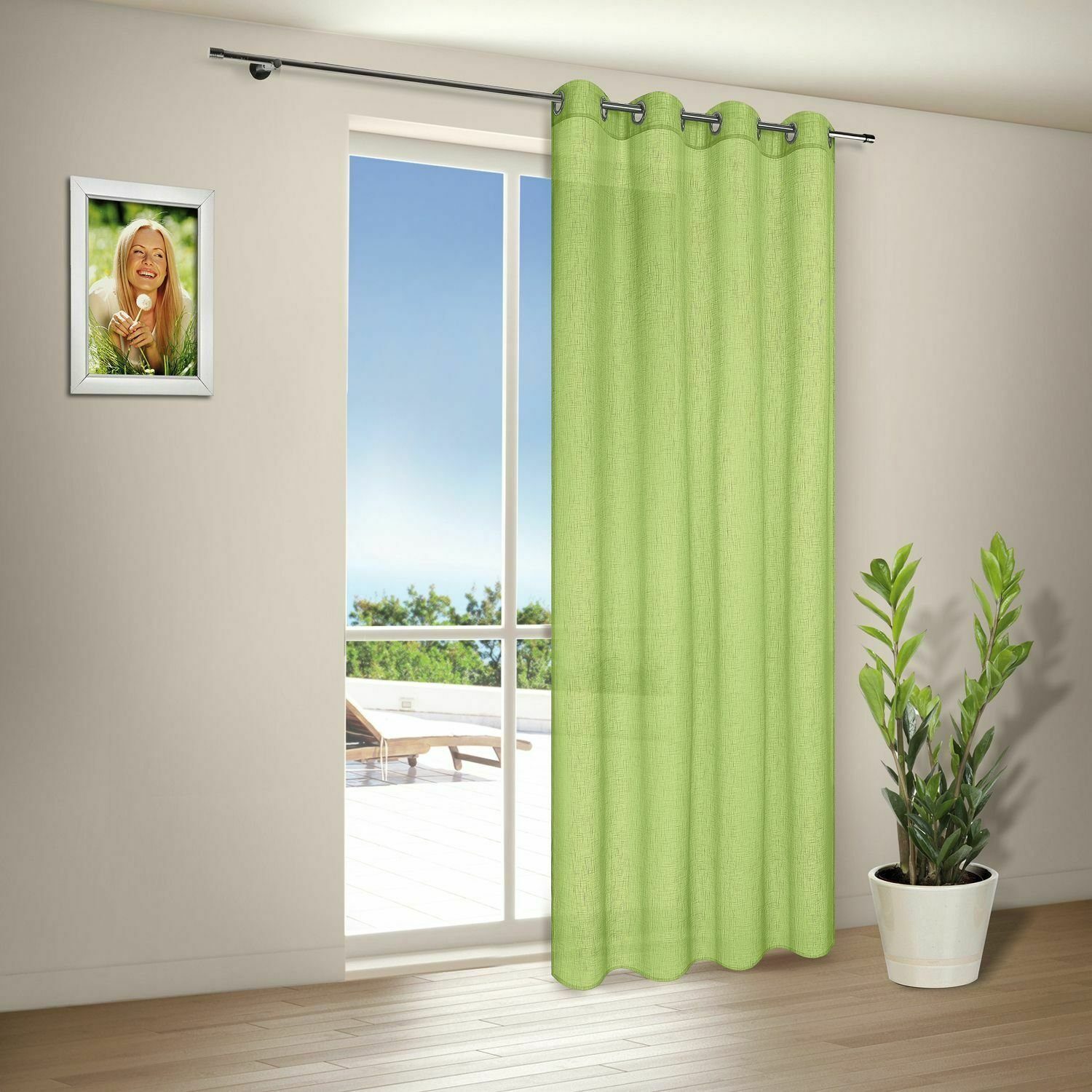 Hinweis Aufhängung | Aufhängung erfolgt mittels Ösen (Durchmesser ca. 35 mm) an der Gardinenstange. |