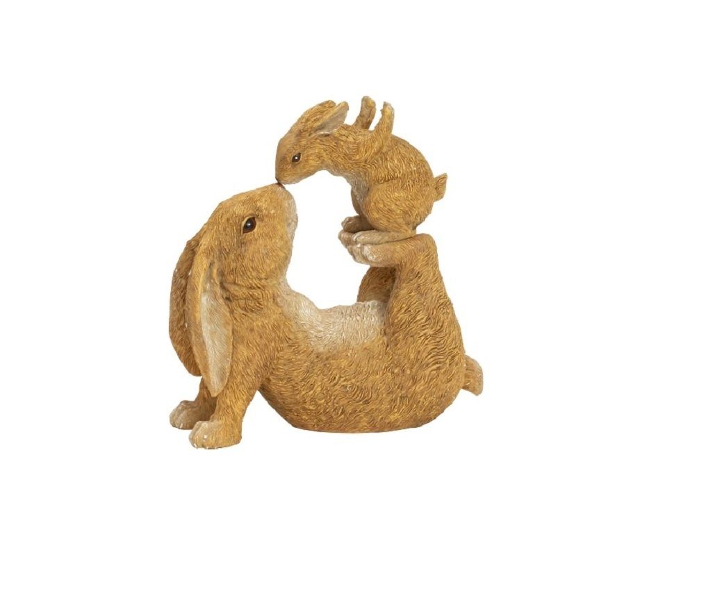 Die Hasen-Mama und ihr Kind sind in einem warmen Braunton gehalten, der natürliche Akzente setzt und zu verschiedenen Einrichtungsstilen passt. Mit einer Höhe von 20,5 cm und einer Breite von 19,5 cm ist dieses Kunstwerk groß genug, um Aufmerksamkeit zu erregen, aber dennoch kompakt genug, um auf einem Regal, einem Tisch oder einem Kaminsims Platz zu finden.