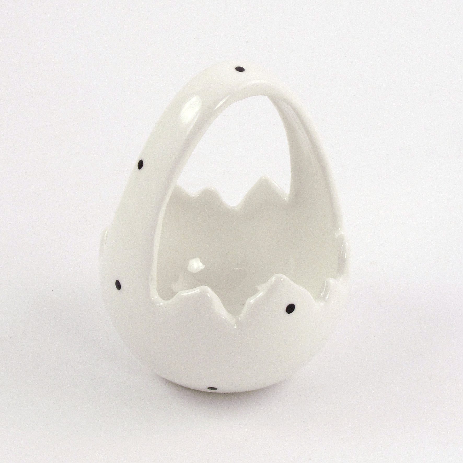 Dieses elegante Eierkörbchen aus hochwertigem Dolomit ist ein echter Hingucker für deine Osterdekoration. In modernem Schwarz-Weiß gehalten und mit liebevollen Details verziert, verbindet es klassische Ostertradition mit zeitlosem Chic.