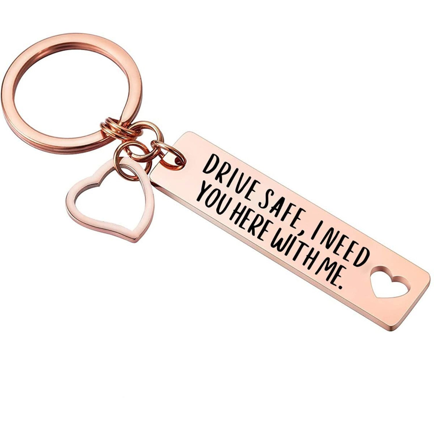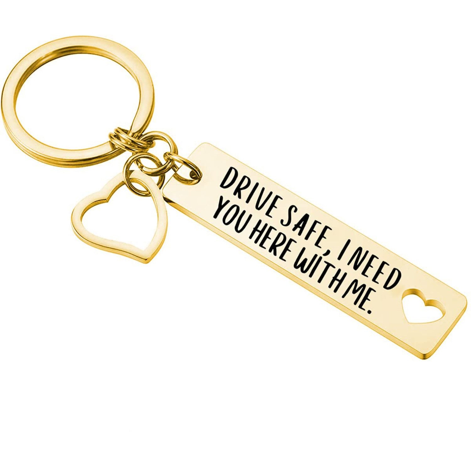 PREMIUM Schlüsselanhänger mit edler Gravur - Drive safe, I need you here with me - Fahr vorsichtig Keychain mit Herz als Glücksbringer und Schutzengel für deinen Lieblingsmensch graviert