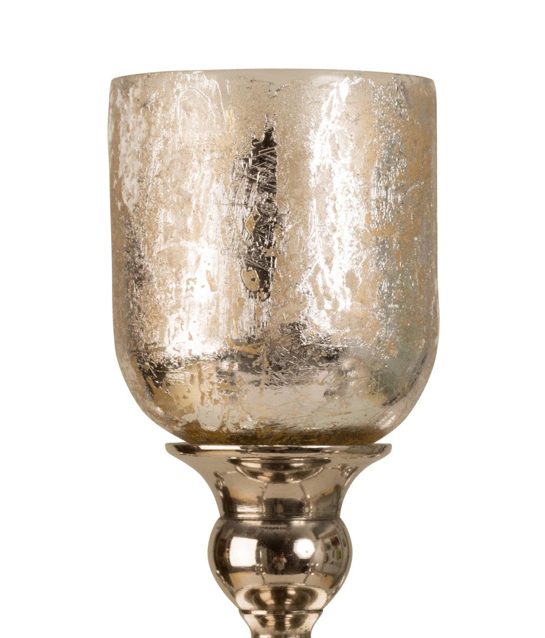 Glasaufsatz 5er-Set für Kerzenständer – Silber/Gold oder Gold/Gold Verwandeln Sie Ihre Kerzenständer im Handumdrehen in vielseitige Windlichter: Mit diesen eleganten Glasaufsätzen schaffen Sie eine warme, stimmungsvolle Atmosphäre. Jeder Aufsatz ist ca. 11 cm hoch und hat einen Durchmesser von ca. 7 cm. Durch leichtes Eindrehen lassen sie sich unkompliziert anbringen. Die Glasaufsätze sind außen silbern und innen golden, alternativ auch in der Варианты gold außen/gold innen erhältlich. Während die Oberfläche mit Patina-Optik einen leicht antiken Charakter verleiht, sorgt das goldene Innere für eine besonders gemütliche Lichtwirkung. Ob für Teelichter oder kleinere Stumpenkerzen – die Aufsätze machen Ihre Kerzenständer noch vielseitiger. Selbst klassische Kandelaber für Stabkerzen lassen sich damit einfach zu dekorativen Windlichtern umfunktionieren. Details: Höhe: ca. 11 cm Durchmesser: ca. 7 cm Farbe: außen silber/innen gold oder außen gold/innen gold Material: Glas Lieferumfang: 5 Glasaufsätze (Kerzen nicht enthalten)