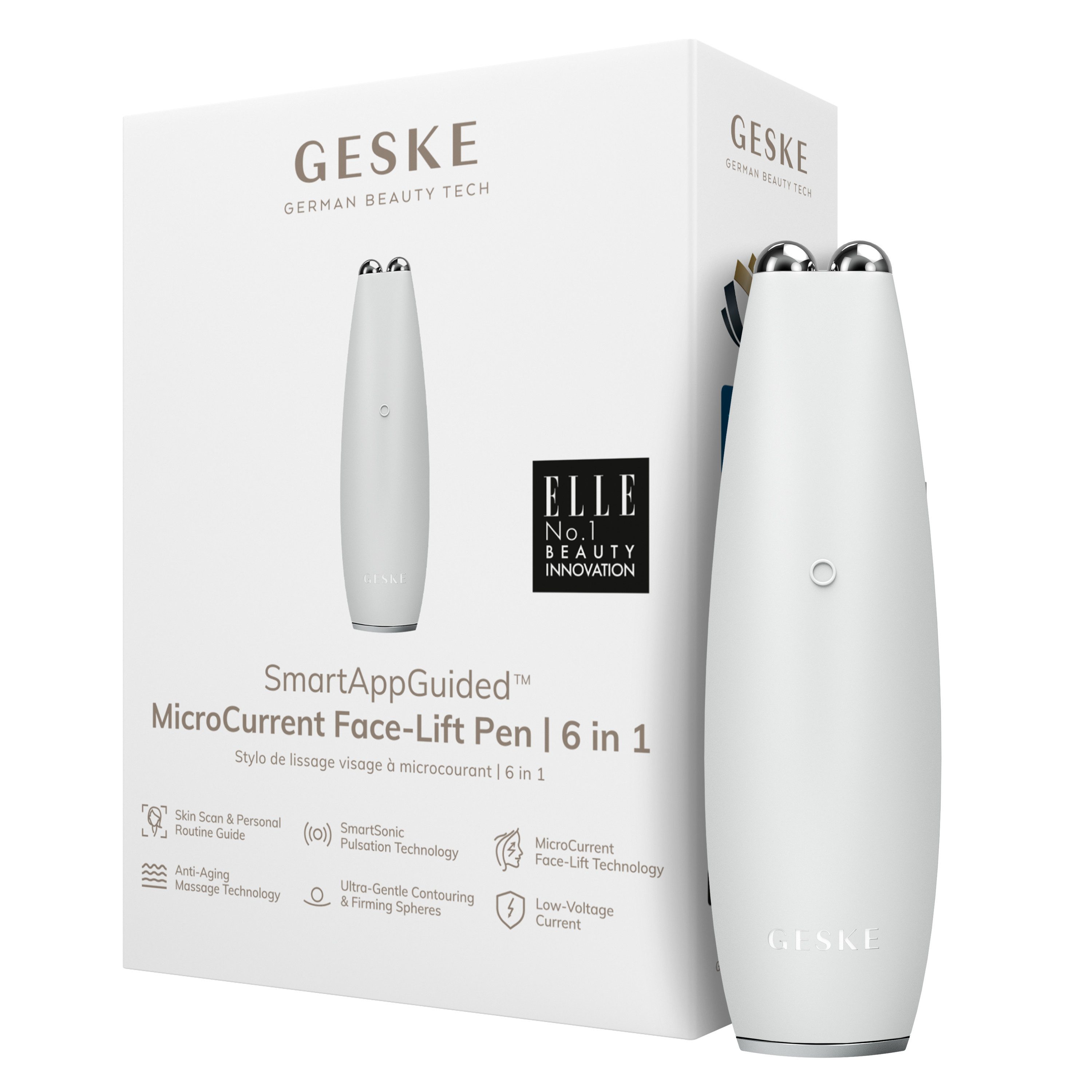 Anwendung | Führe mit der kostenlosen GESKE German Beauty Tech App einen Skin Scan durch und erhalte so in wenigen Sekunden eine KI-gestützte Hautanalyse.Die App macht die Auswahl der richtigen Geräte sowie die Anwendung dieser spielend leicht: Neben personalisierten Produktempfehlungen basierend auf den Schwerpunkten, die Du setzen möchtest, erstellt der GESKE Algorithmus außerdem eine individuell auf Dich angepasste Beauty-Routine.Befolge Deine Beauty-Routine, die der Algorithmus wöchentlich an Deine Fortschritte anpasst, und sieh zu, wie sich Dein Hautbild Schritt für Schritt verbessert. In der App findest Du für alle Geräte zahlreiche Video-Tutorials, die Dich bei der korrekten Anwendung begleiten.Die App ist in 45 Sprachen verfügbar und ist für iOS und Android in den jeweiligen Stores kostenlos zum Download verfügbar. |