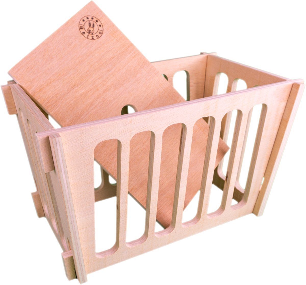 Diese praktische Heuraufe von Getzoo wird aus unbehandeltem Naturholz hergestellt und ist speziell auf die Bedürfnisse von Meerschweinchen ausgerichtet. Ein Deckel verhindert das verschmutzen des Heus durch hinein springende Tiere. Der Abstand der Gitter ist mit 3cm optimal für Meerschweinchen. Durch ein stabiles Stecksystem wird auf gefährliche Nägel oder chemische Klebstoffe verzichtet.
