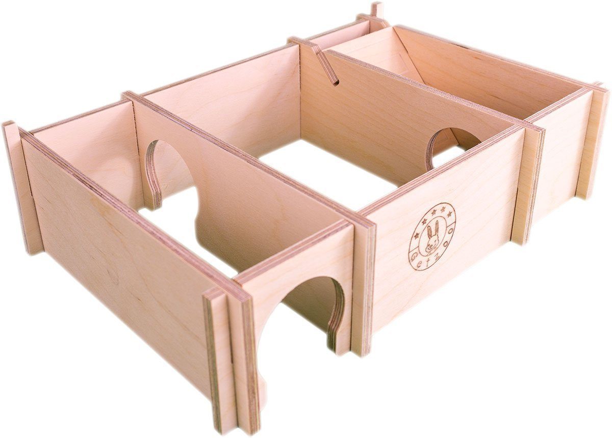 Mit nur ca. 28 x 20 cm Grundfläche, braucht das Hamsterhäuschen Leyla nur wenig Platz, um Ihren Kleinnager ein gemütliches Zuhause zu schaffen. Es bietet ein geräumiges Dreikammernsystem in dem sich Ihr Nager nach Belieben seinen Schlafplatz oder seine Vorratskammer selbst aussuchen kann – wie in einem natürlichen Hamsterbau. Das Wohnlanyrinth Leyla wird aus unbehandeltem Birkenholz hergestellt. Durch das abnehmbare Dach kann eine störungsfreie Nestkontrolle durchgeführt werden. Das Holzhäuschen wurde speziell auf die Bedürfnisse von Zwerghamstern abgestimmt - eignet sich aber auch für Farbmäuse. Die obere Ebene kann von Ihrem Nager über die im Labyrinth liegende Rampe erreicht werden. Diese kann zum Aufstellen eines Laufrades, einer Tränke oder anderem Zubehör genutzt werden.