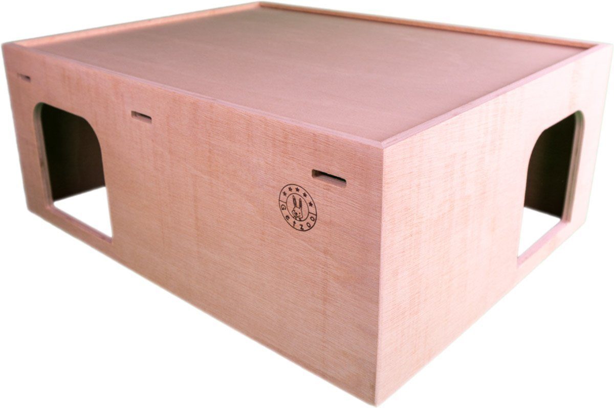 Haus ist nicht gleich Haus: sowohl die Размер des Häuschens als auch die der Eingänge wurden auf die natürlichen Bedürfnisse der Tiere zugeschnitten. Damit die Harmonie im Käfig gewahrt bleibt, hat das Getzoo Würfelhaus Bilbo zwei große Ein- und Ausgänge. So können sich mehrere Tiere auch mal aus dem Weg gehen. Geräumig und kuschelig ist es im Inneren. Lüftungslöcher sorgen zudem für die nötige Belüftung im Häuschen. Das große Flachdach des Getzoo Würfelhauses wird gerne als Liegefläche und Aussichtsplattform genutzt.