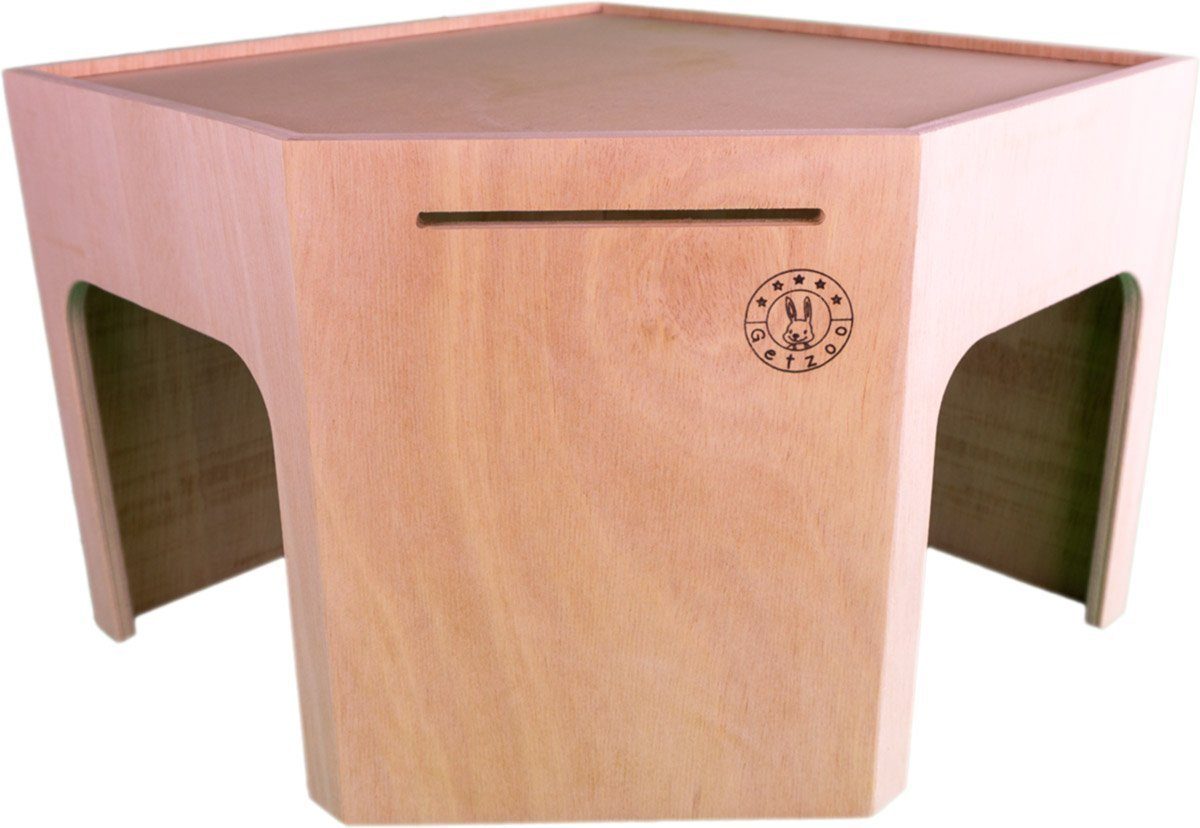 Bewusste Gestaltung für die artgerechte Haltung Ihrer Lieblinge. Das große Flachdach eröffnet eine zweite Ebene als Liege- und Aussichtsfläche. Zwei separate Ein- und Ausgänge im Getzoo Zwergkaninchenhaus vermeiden Gedränge und sorgen dafür, dass sich die Tiere ganz einfach ausweichen können und die Harmonie nicht gestört wird. Lüftungsschlitz und Beschaffenheit aus Holz sorgen für ein angenehmes Klima im Häuschen.