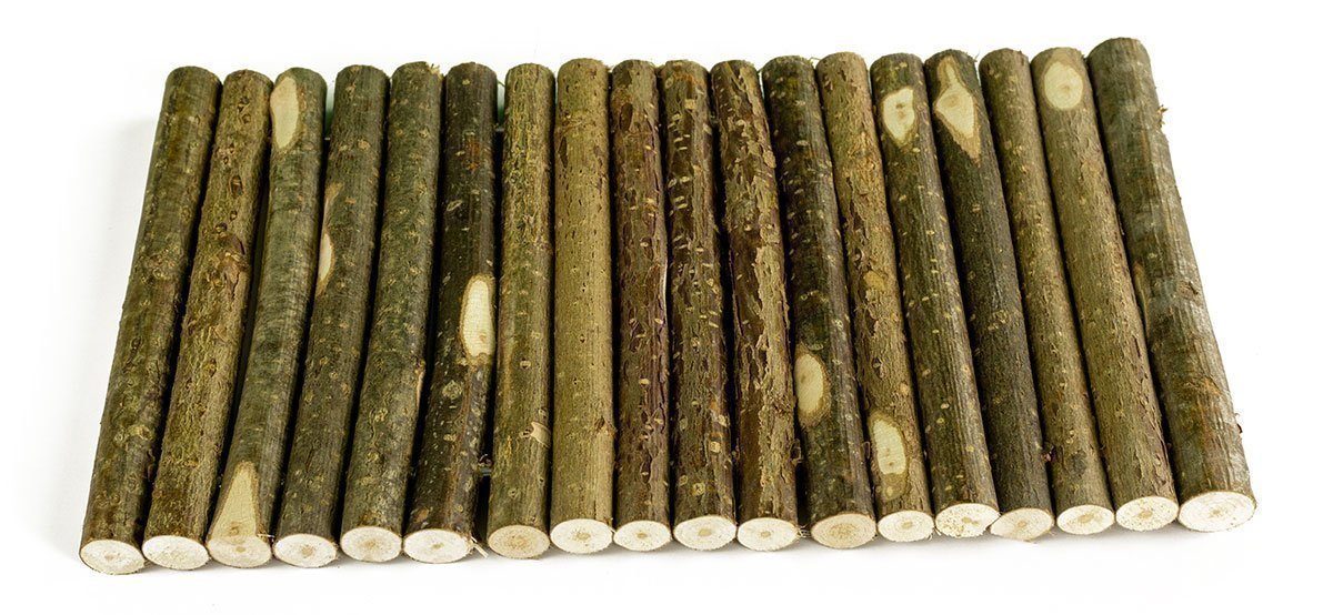 Die Zweige werden dicht an dicht auf zwei dicke Drähte gezogen, sodass Spalten zwischen den einzelnen Ästchen minimal gehalten werden und kein Pfötchen hängen bleiben kann. Der Dicke Draht sorgt dabei für die nötige Stabilität, ist dabei aber tief genug im Holz, um nicht ihrem liebsten Nager zu schaden. Dennoch lässt sich die Haselnussbrücke kinderleicht in fast jede Form bringen.