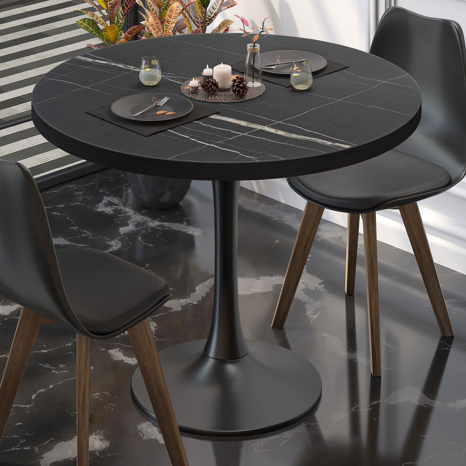 Farbe Tischplatte | Marmor/Schwarz |