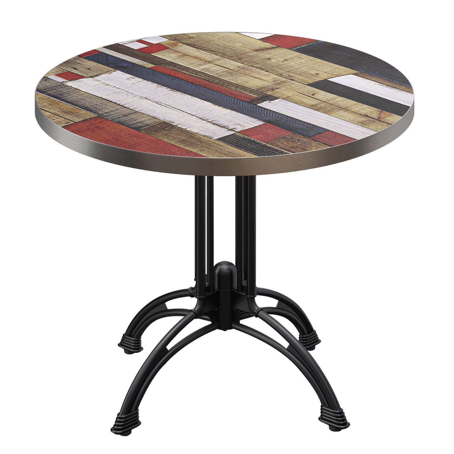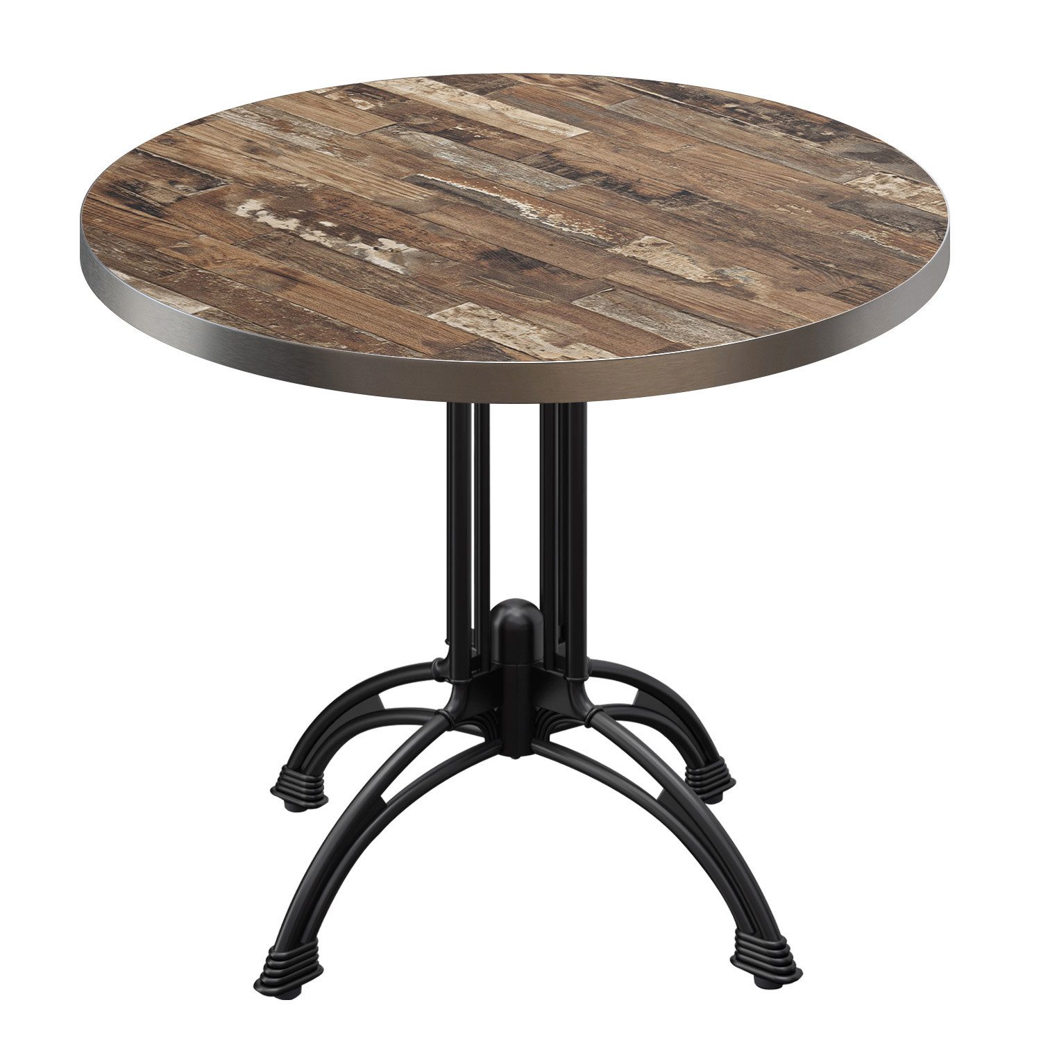 BMLG | Bistro Tisch | Ø 80 x 75 cm | Rund | Edelstahl Rand | Vintage Old / Schwarz | Tischplatte: Ø 78 x 2,5 cm | Tischgestell: 72 cm | Gesamthöhe: 74,5 cm |